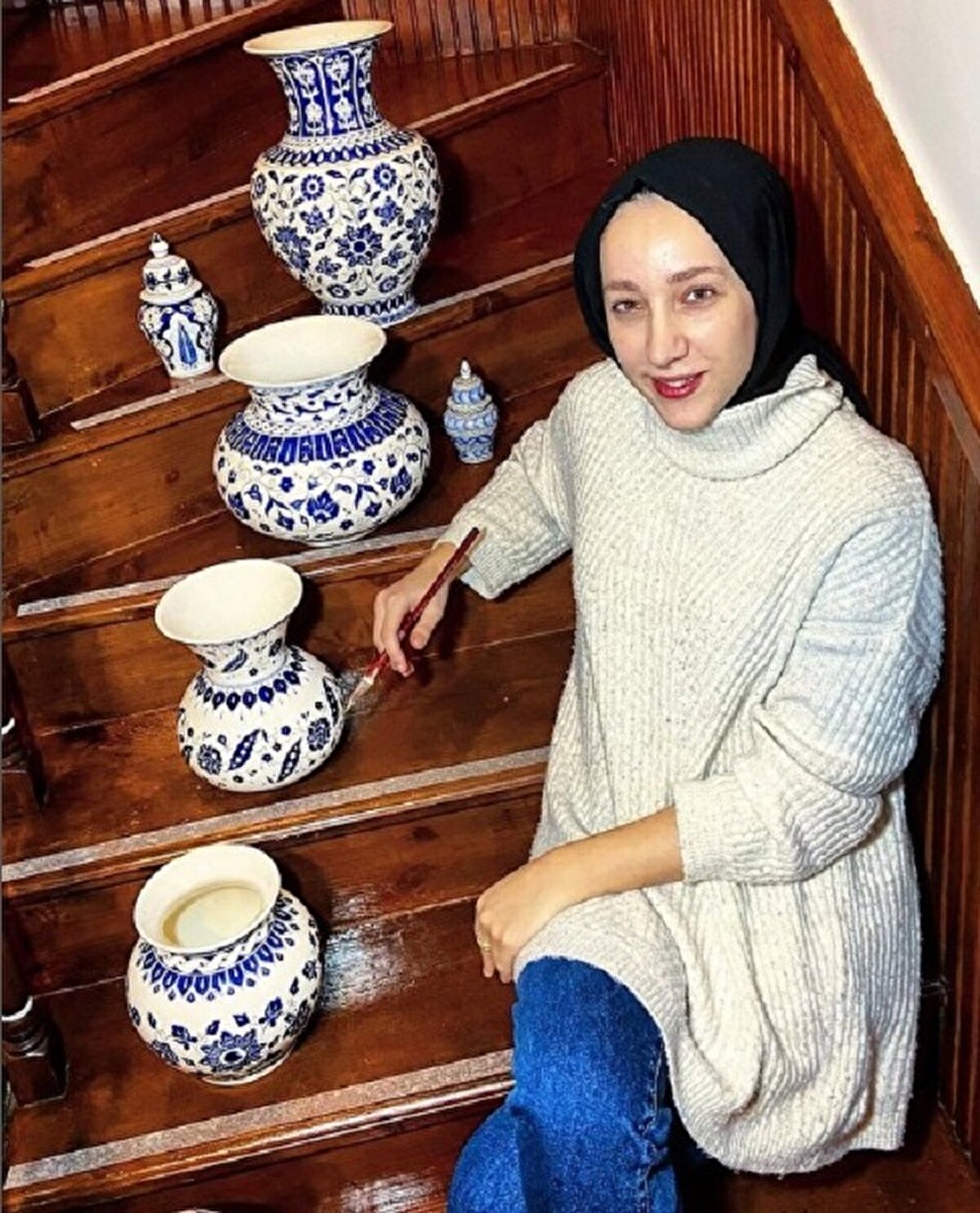 Nebile Topcu sahip olduğu çini koleksiyonunun devamında, 2015 yılında Melike Haliloğlu’ndan ders alarak çinicilik uygulamaları yapmaya başlar.
