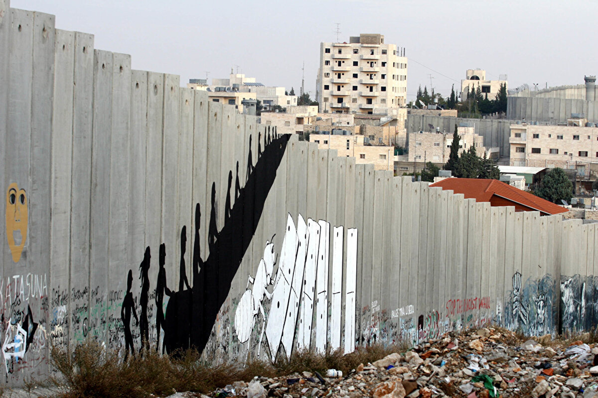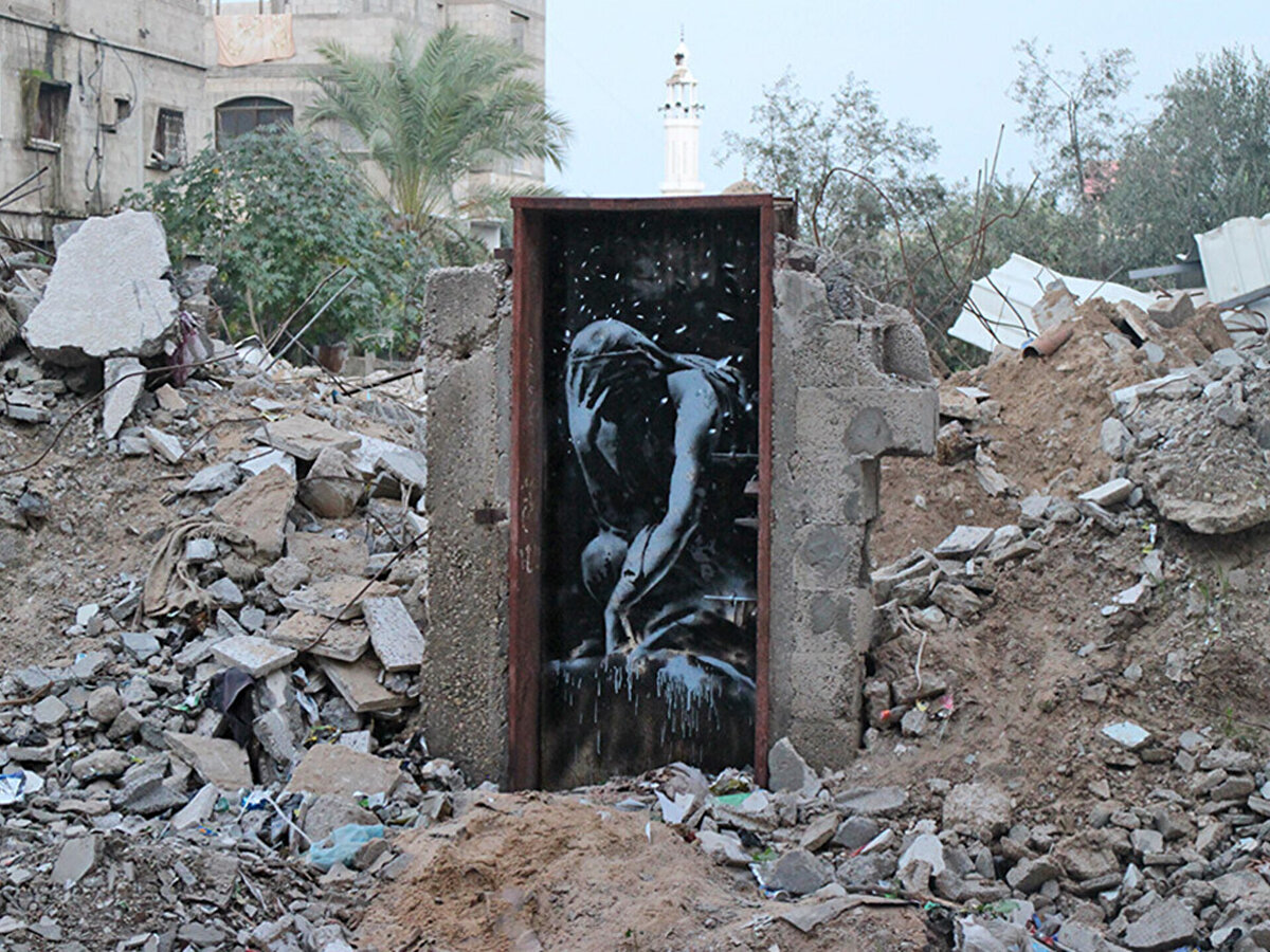 Tuvalini; savaş karşıtı mesajlar vermek, hayvan haklarını savunmak ve tüketim çılgınlığını eleştirmek için kullanan sanatçı Banksy, İsrail'in Filistin topraklarında yıllardır sürdürdüğü işgali de 2005'te yerinde belgeledi.