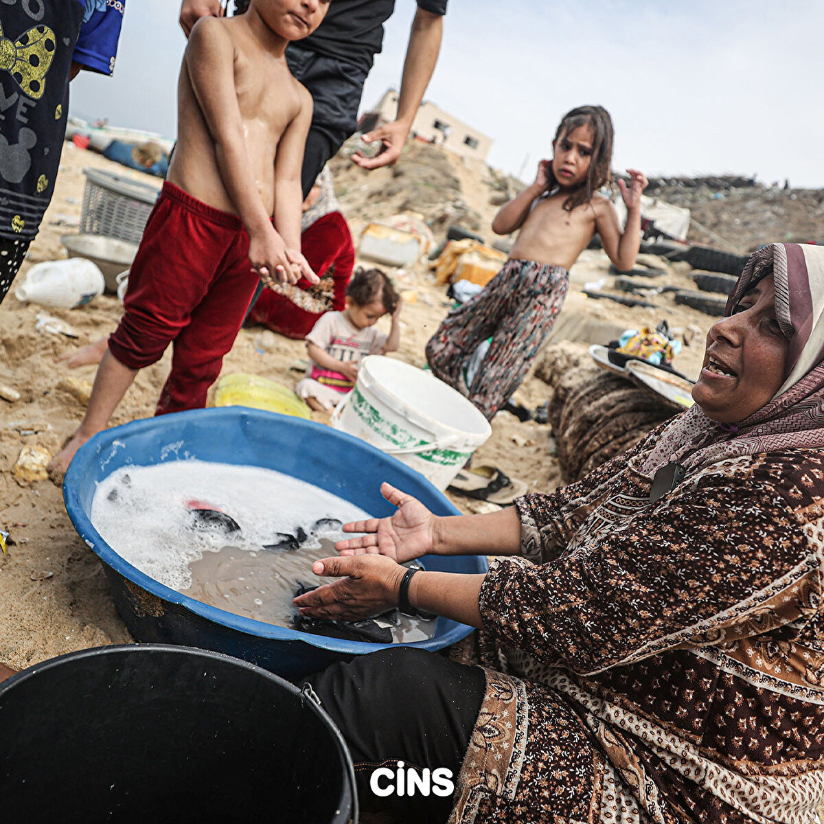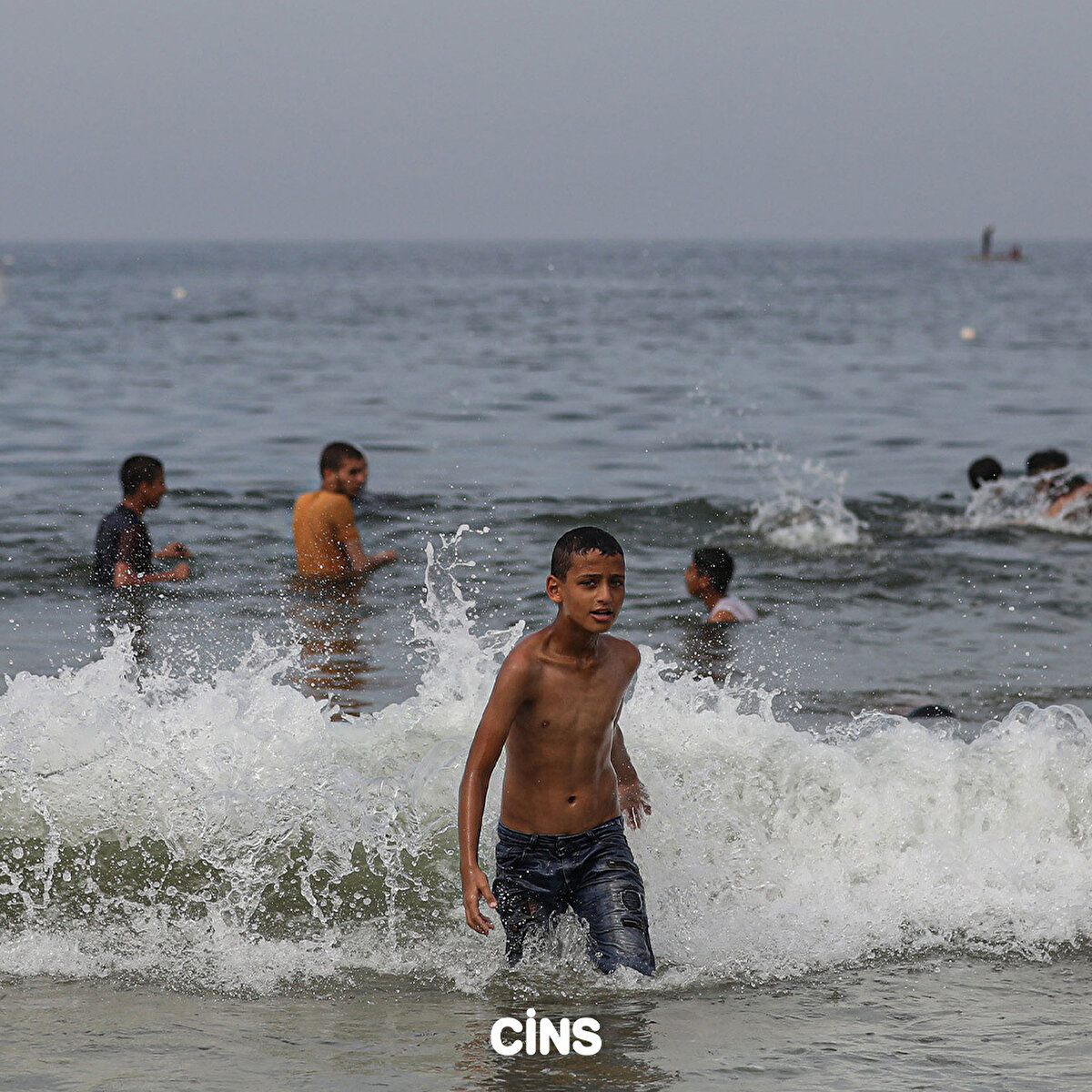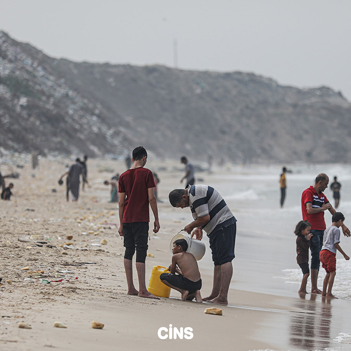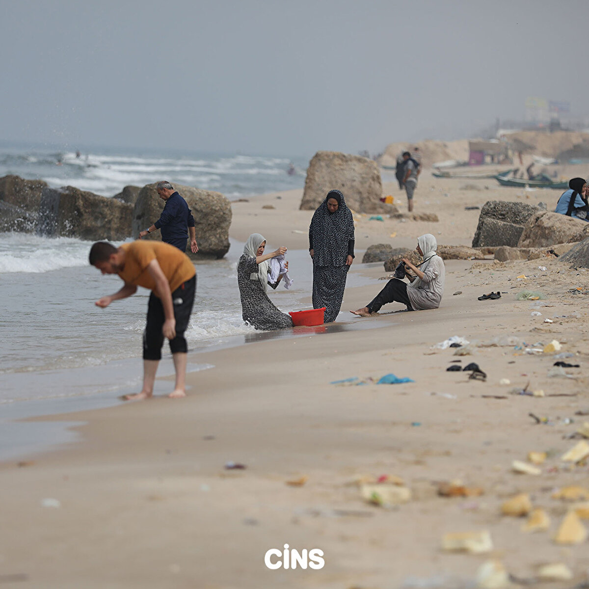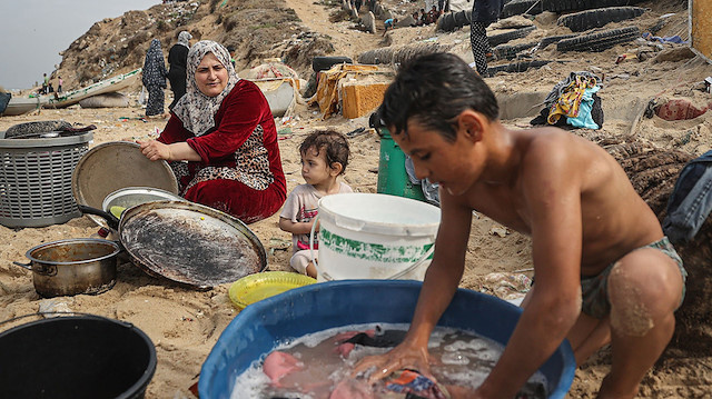 İsrail'in Gazze'deki suyu kesmesiyle birlikte Filistinliler, ihtiyaçlarını sahile inerek karşılamaya çalışıyor