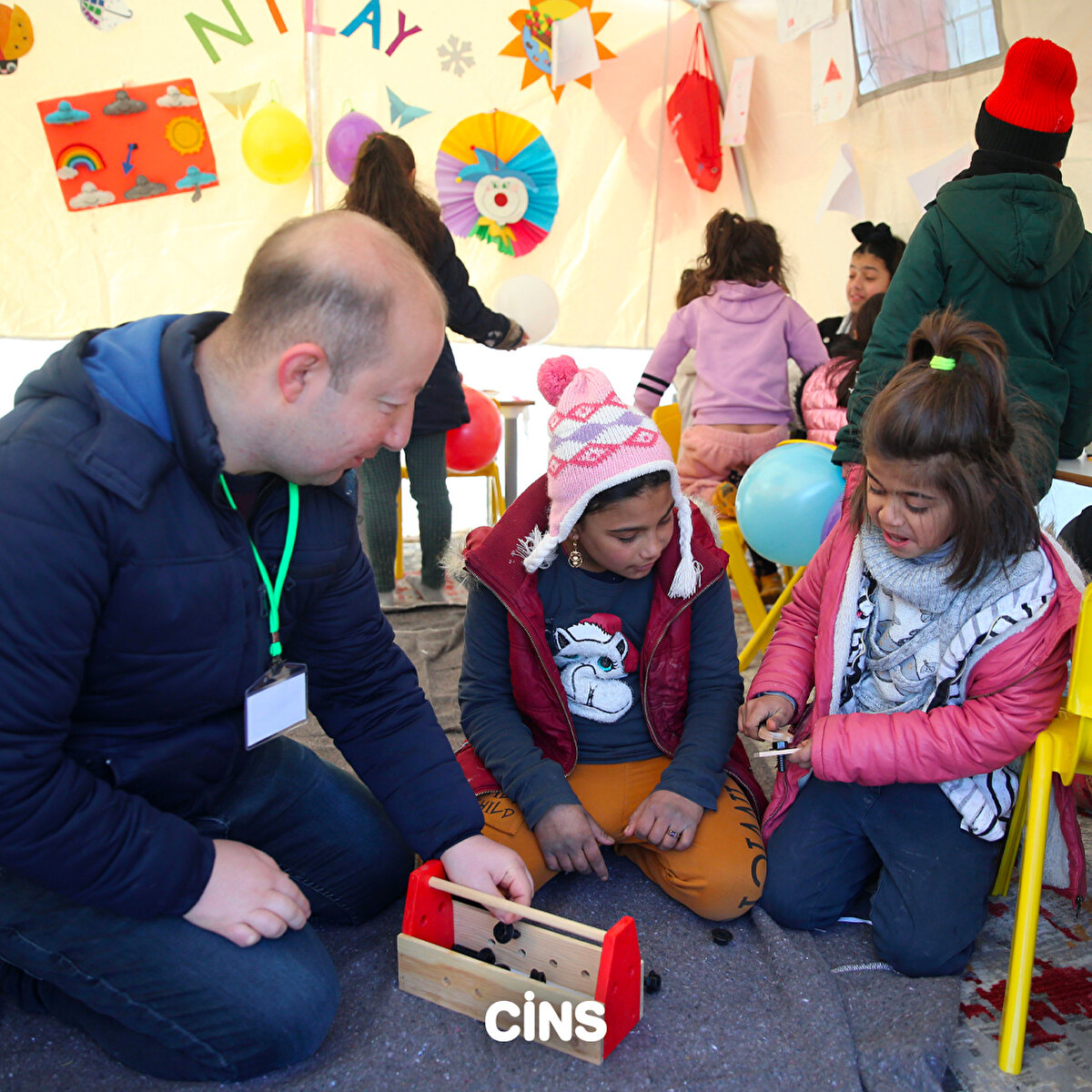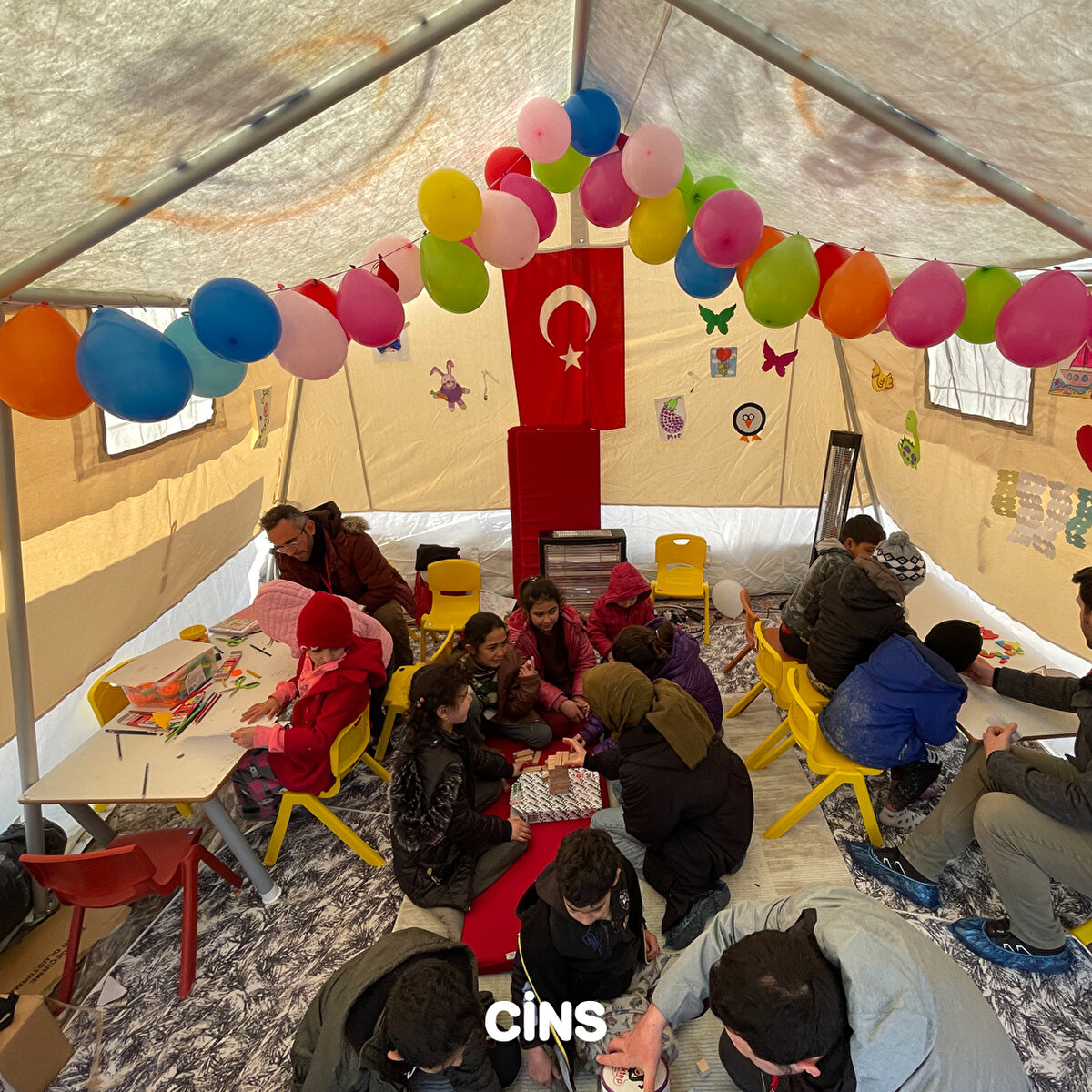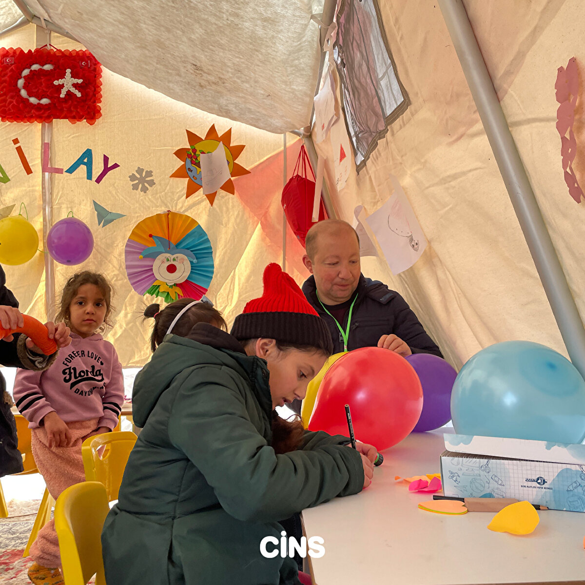 Malatya'da gönüllüler, çocuklara psikolojik destek sağlamak amacıyla bir çadır kurdu
