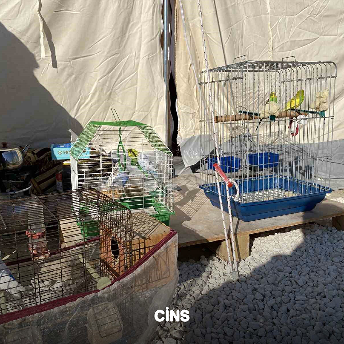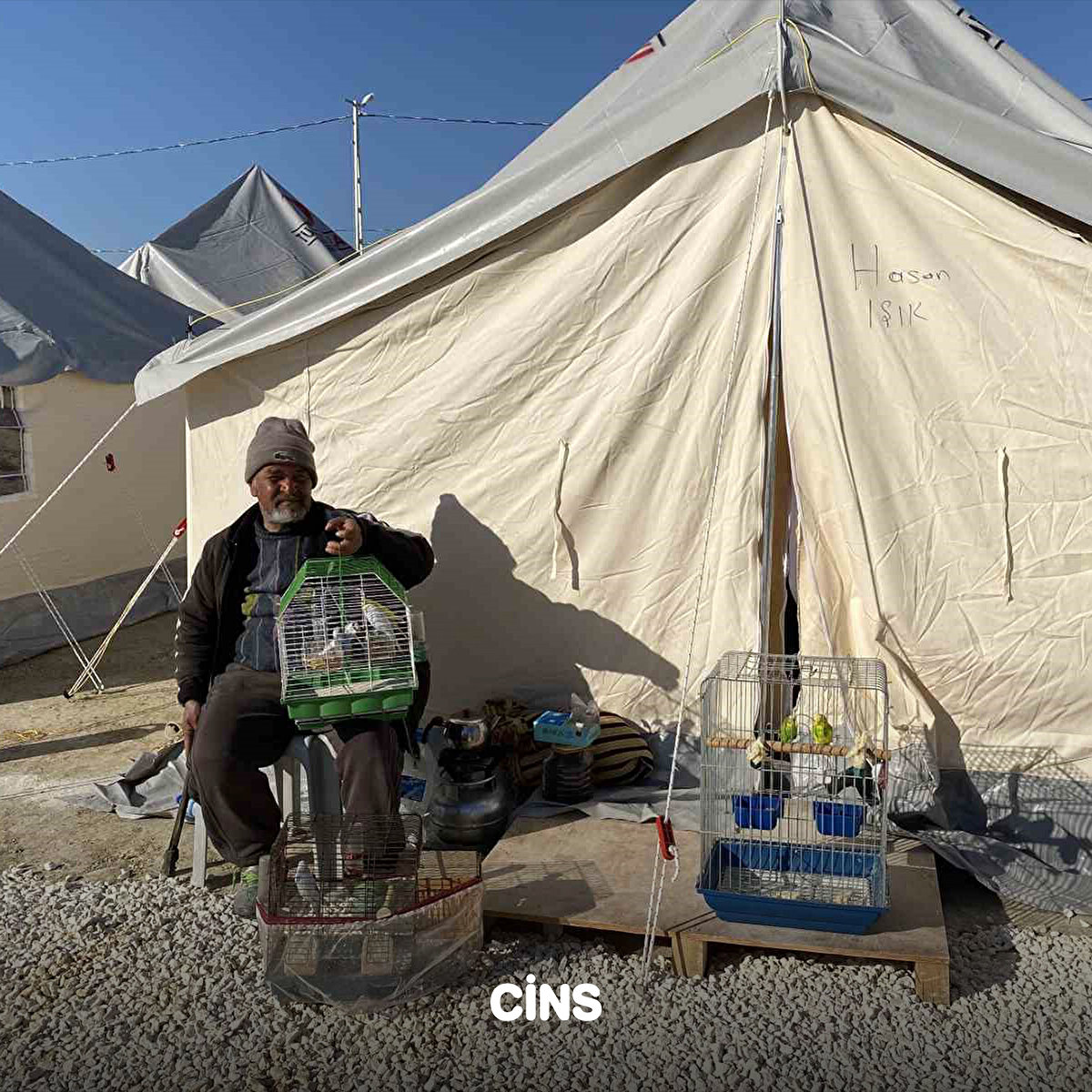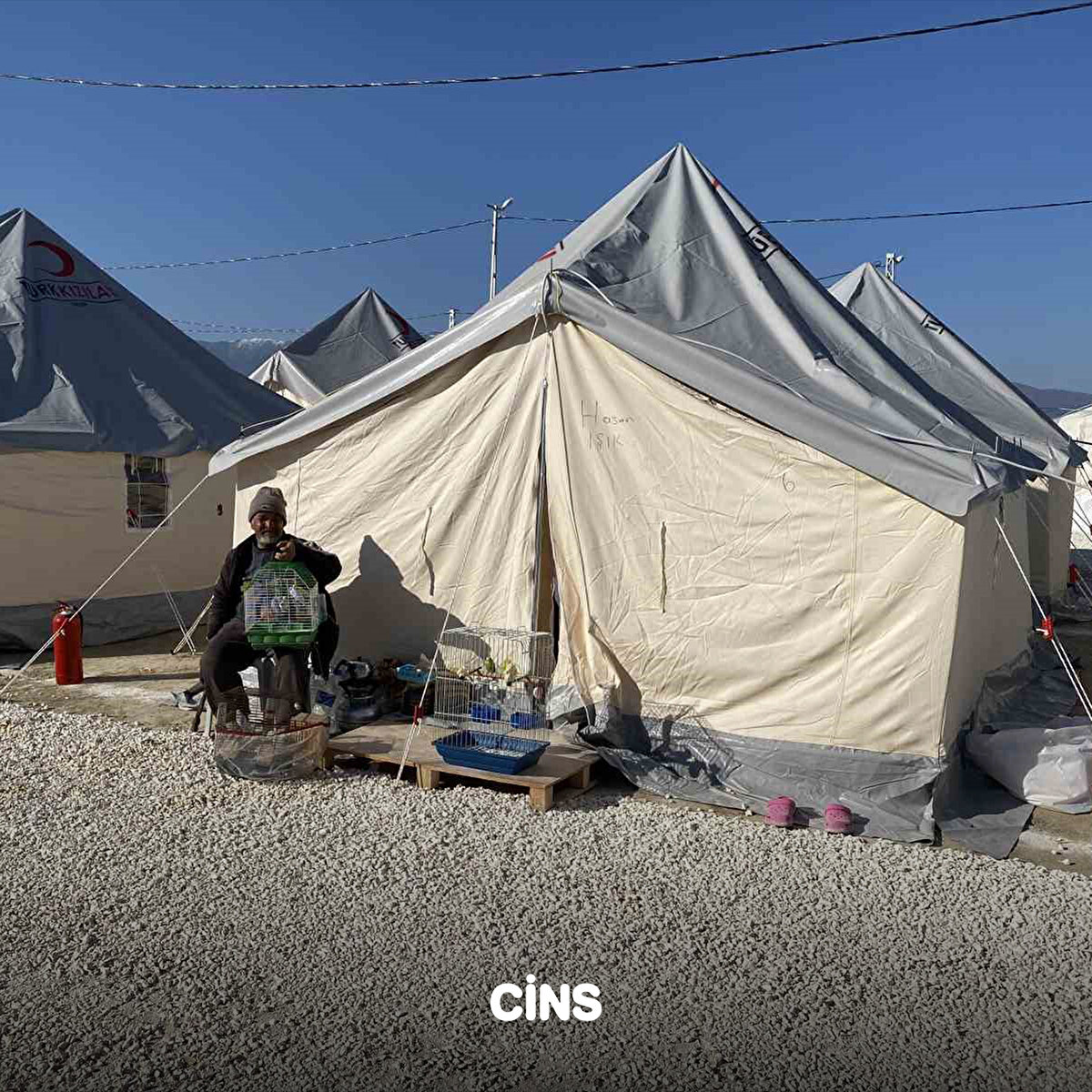 Hatay'da evi ağır hasar alan Hasan Işık, kurtarabildiği muhabbet kuşları ile çadır kentte yaşıyor