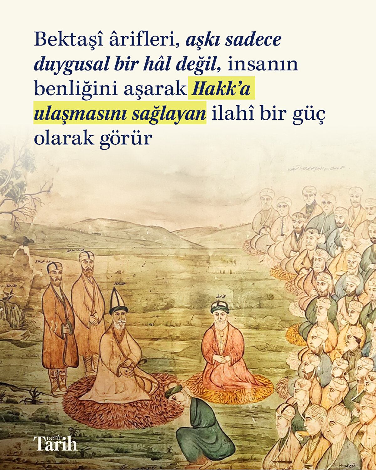 Kaygusuz Abdal'dan Yunus Emre'ye, Hacı Bektâş-ı Velî'den İbrahim Edhem'e, Ali İzzet'ten Niyâzî-i Mısrî'ye kadar pek çok ârif ve mutasavvıftan misallerle, insanın özünde yer alan aşkın Bektaşî nazariyesine mercek tutuyoruz.