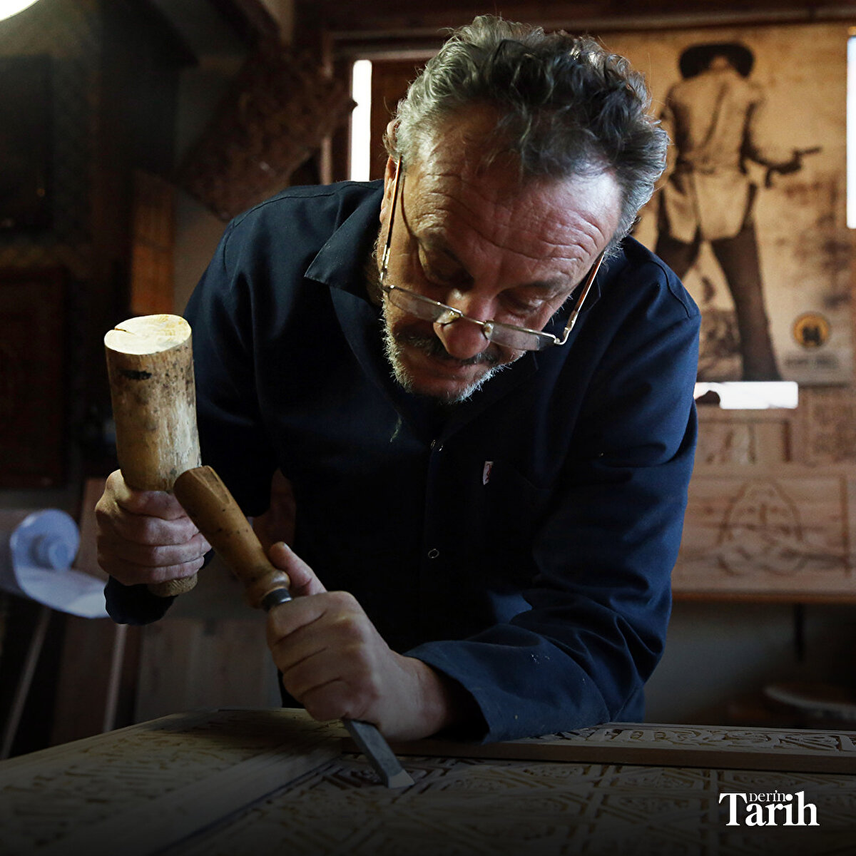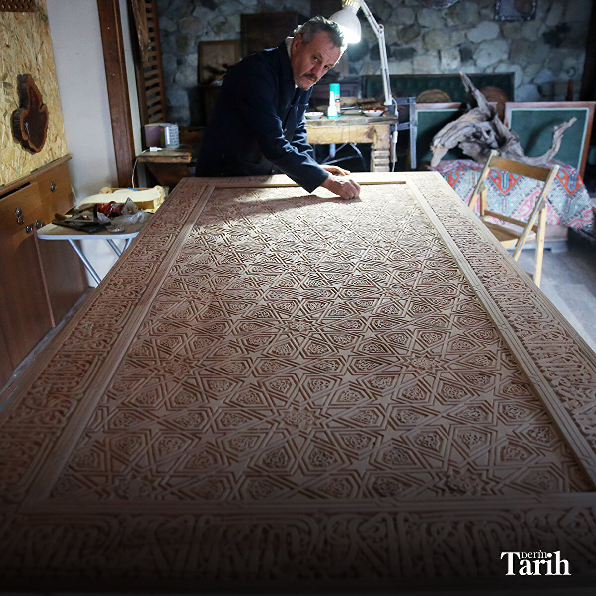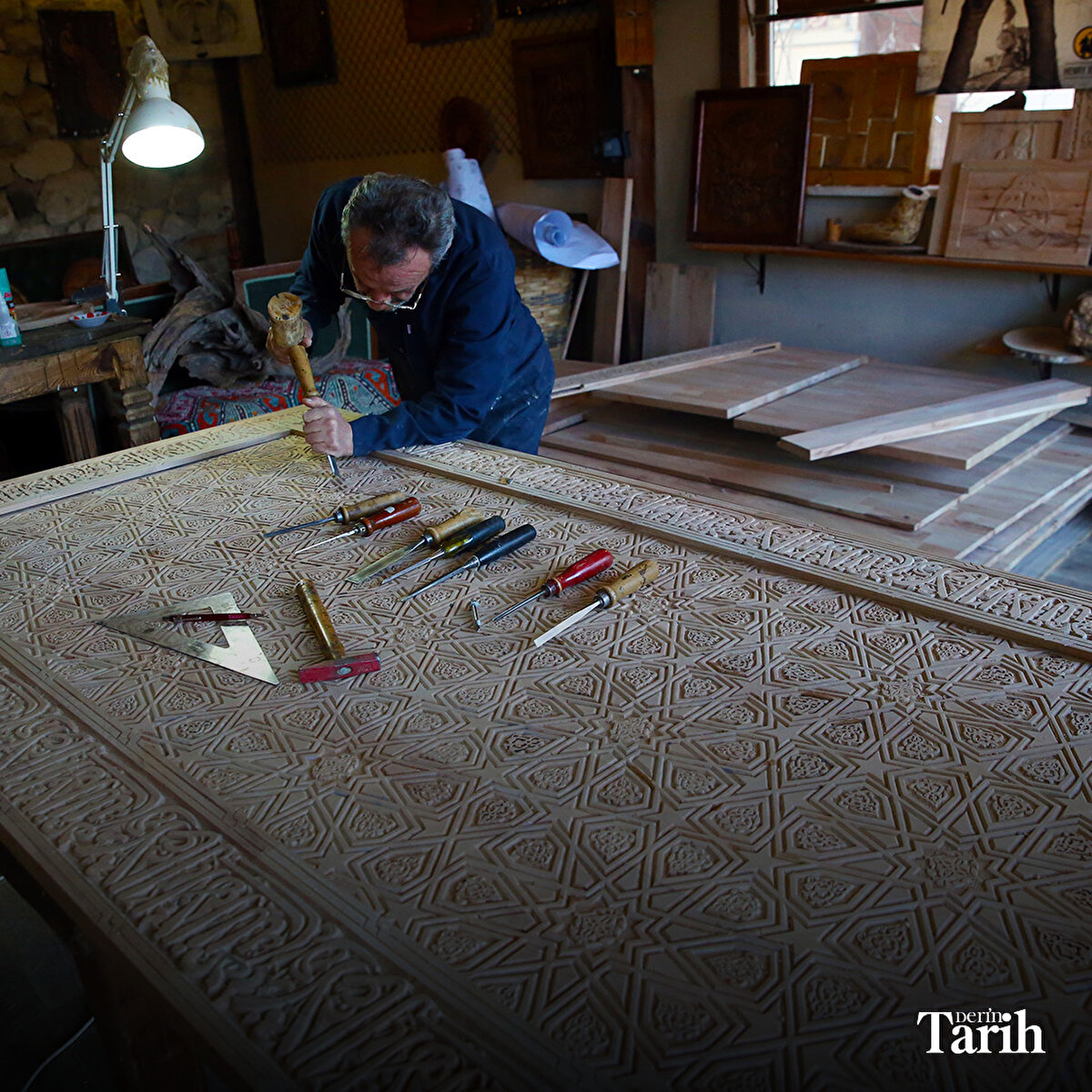Kastamonu'da yaşayan marangoz Çetin Küçük, İspanya'daki Endülüs Emevi Devleti'nden kalma El Hamra Sarayı ile Bursa'daki erken dönem Osmanlı eseri Ulu Cami'den motifleri ahşap panoya işliyor.