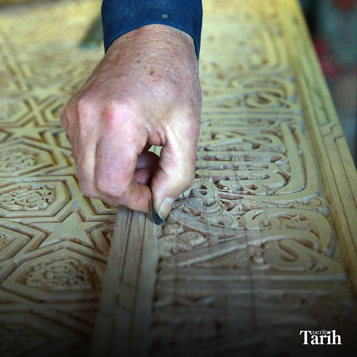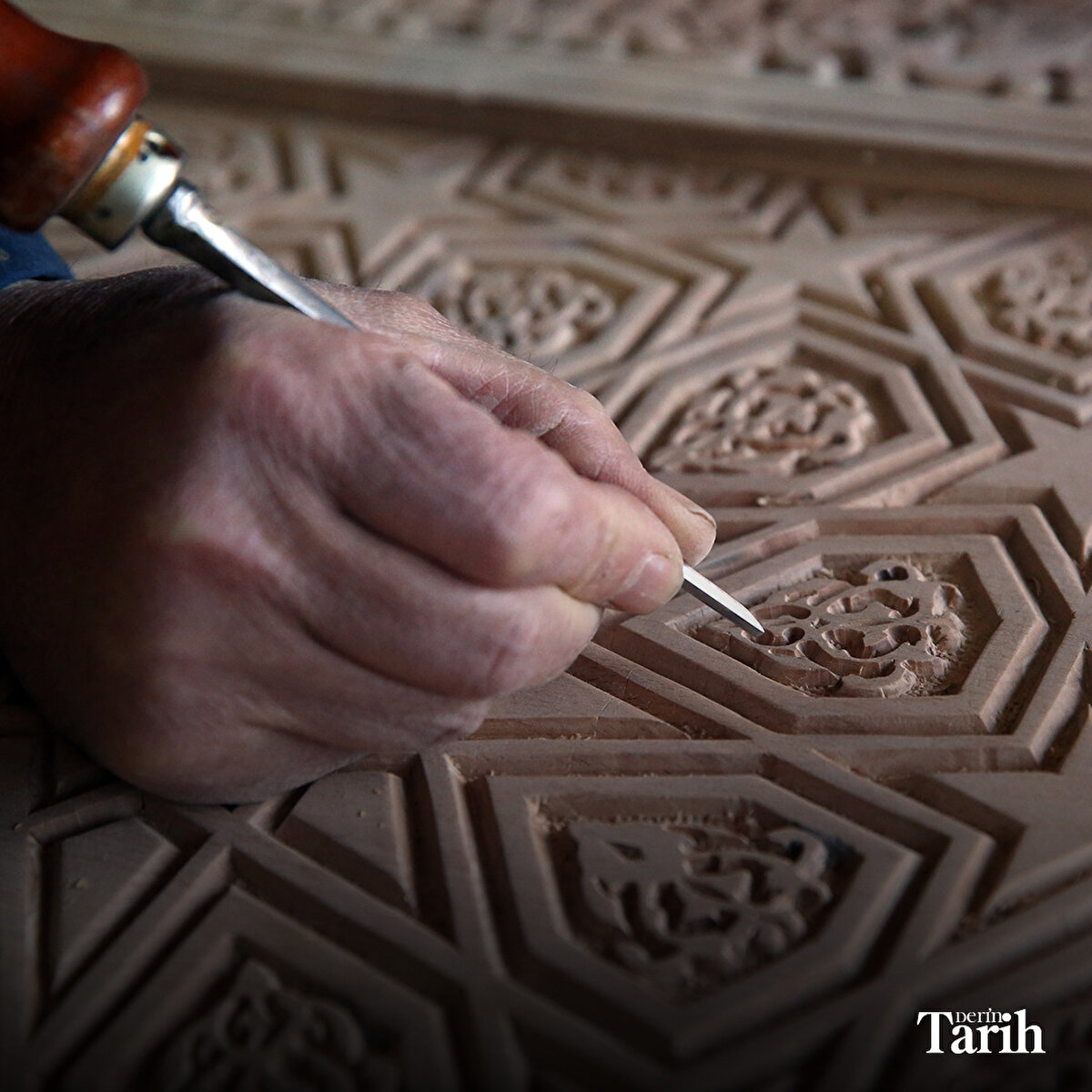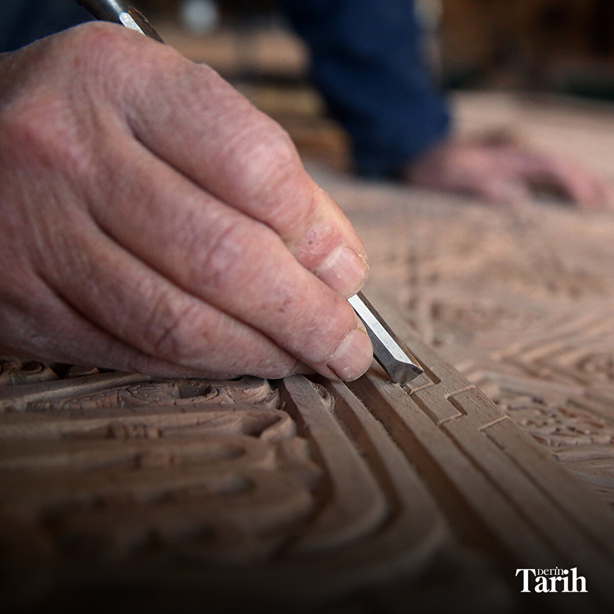 Kastamonu'da yaşayan marangoz Çetin Küçük, İspanya'daki Endülüs Emevi Devleti'nden kalma El Hamra Sarayı ile Bursa'daki erken dönem Osmanlı eseri Ulu Cami'den motifleri ahşap panoya işliyor.
