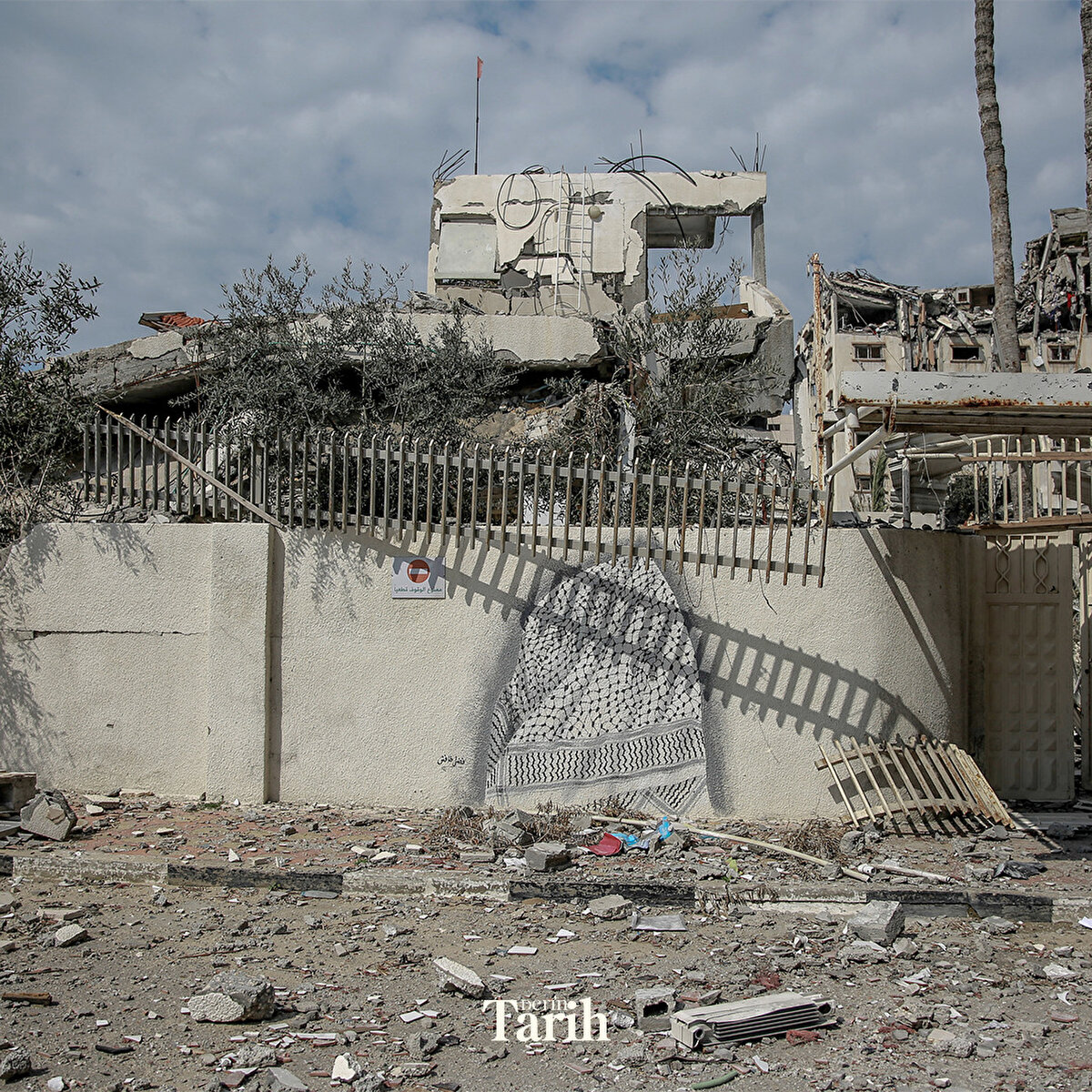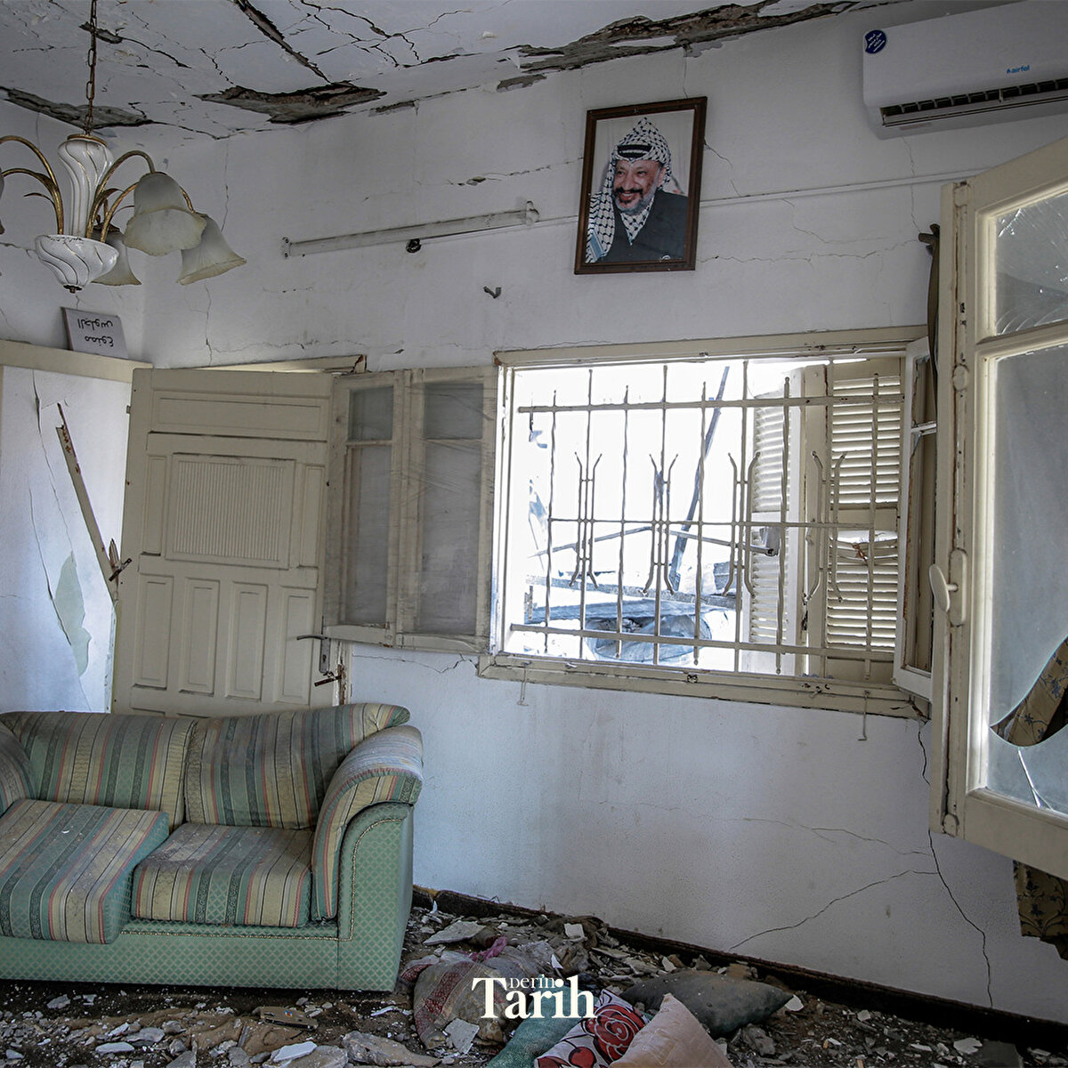 İşgalci İsrail'in aylardır bombaladığı Gazze Şeridi'nde, Filistin direnişinin lideri Yaser Arafat'ın 1995 - 2001 yıllarında yaşadığı ve hatıralarıyla dolu evi harap edildi.