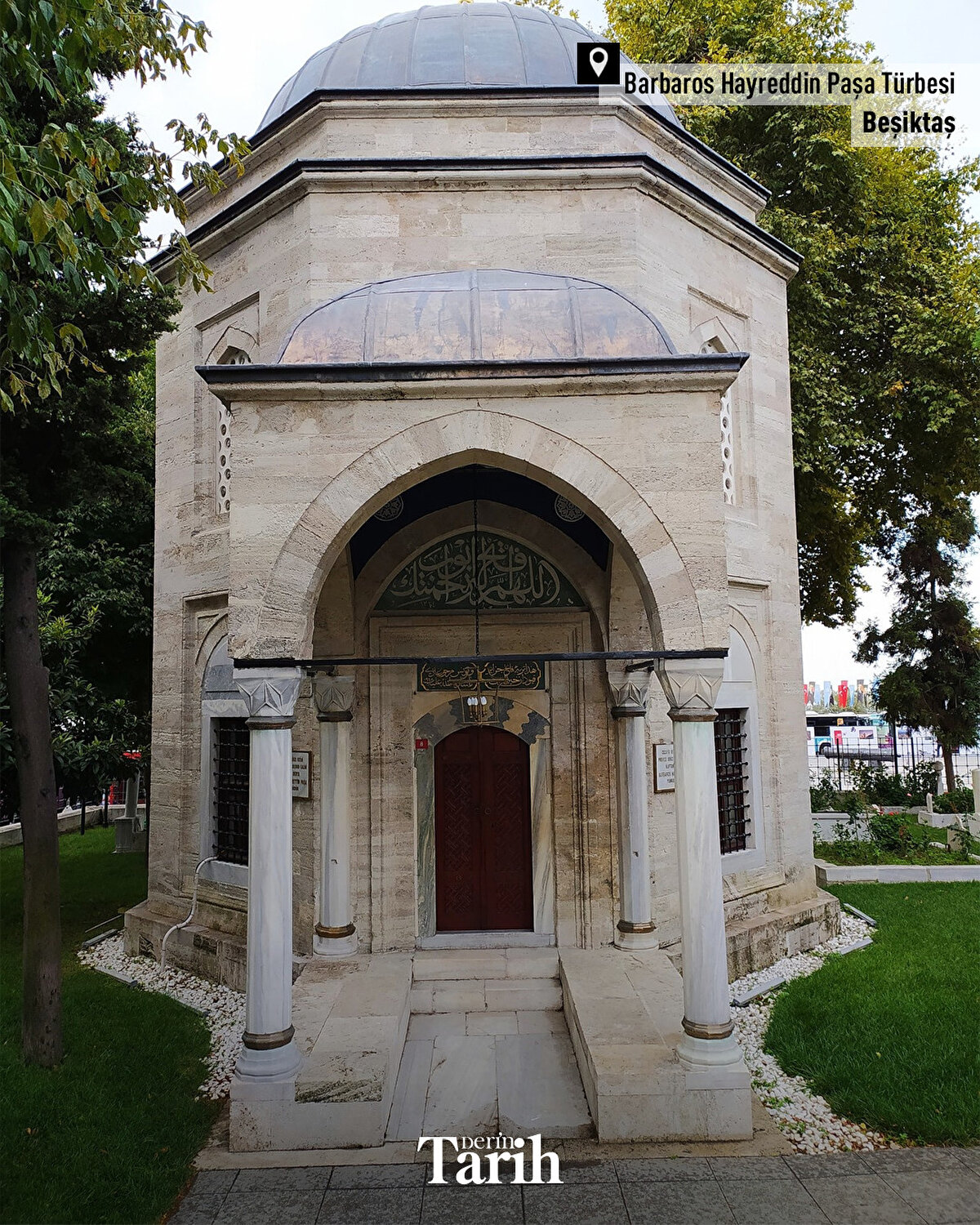 ▪Mimar Sinan'ın eseri olan türbe, XVI. yüzyılın ünlü kaptan-ı deryâsı, Preveze Deniz Savaşı'nın muzaffer komutanı Barbaros Hayreddin Paşa için yaptırıldı.