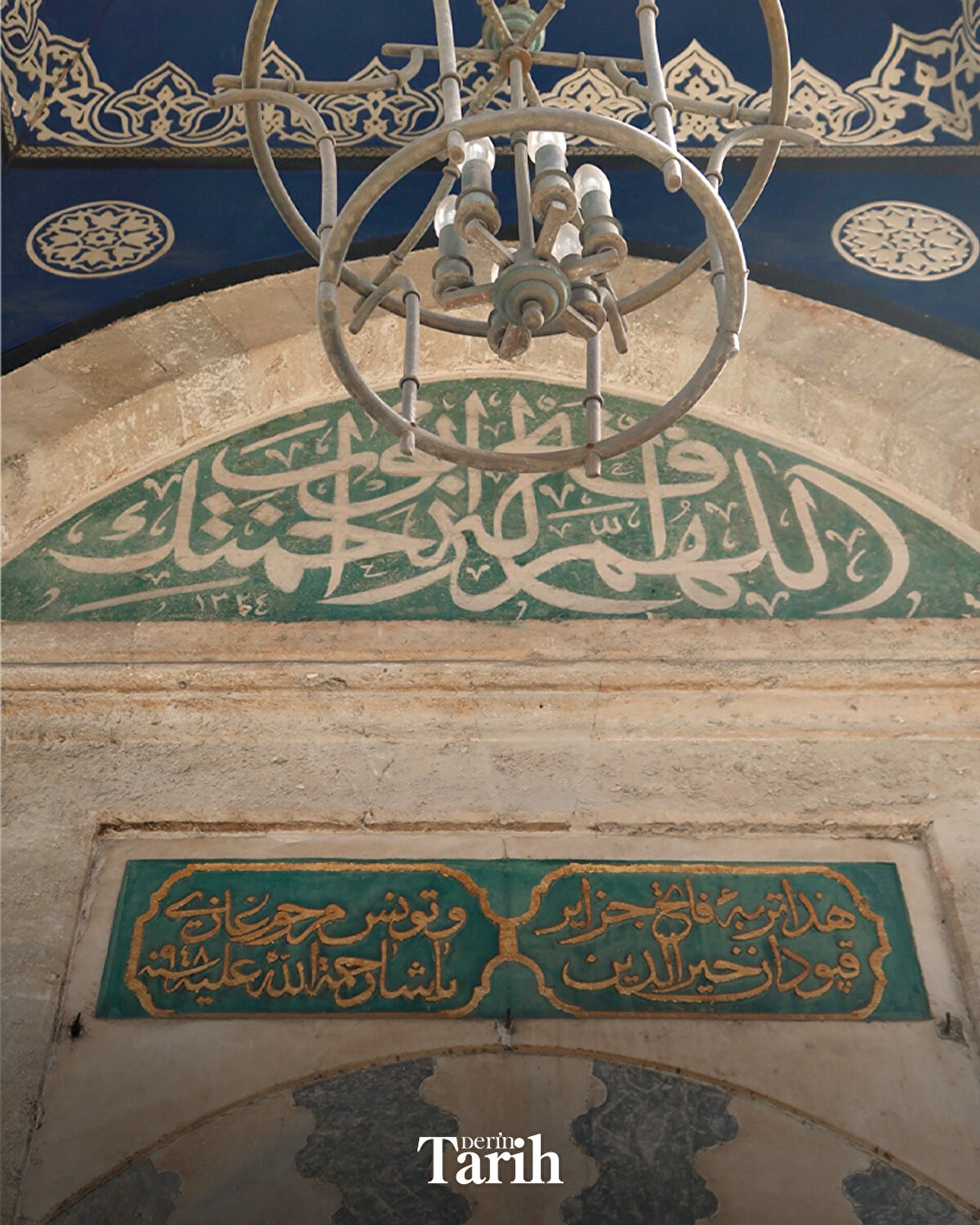 ▪Türbenin kitâbesinde, “Hâzâ türbe-i fâtih-i Cezâyir ve Tunus merhum gazi kapudan Hayreddin Paşa rahmetullahi aleyh-sene 948" yazar.