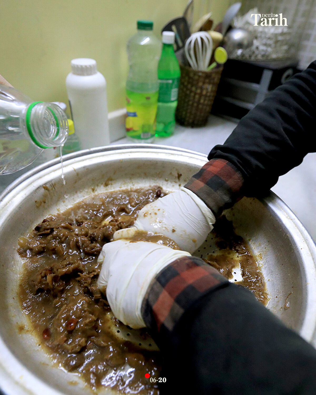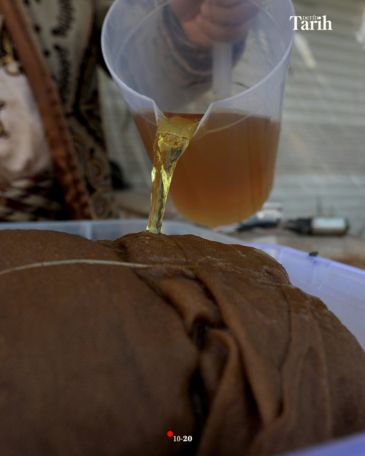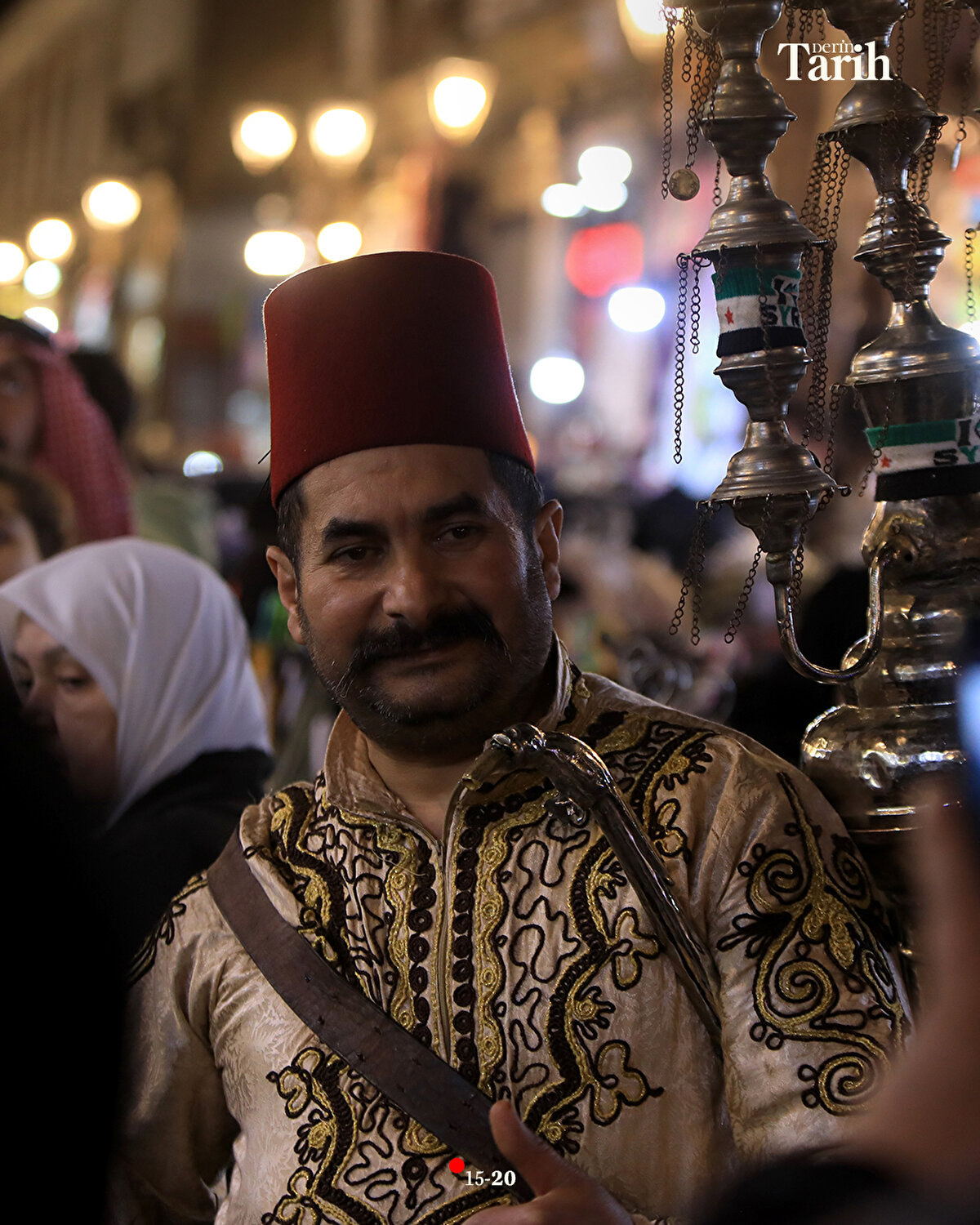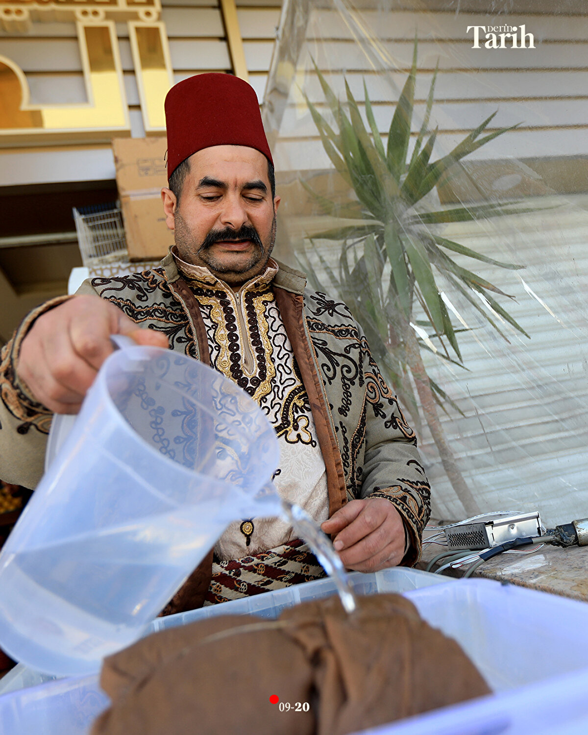 Evinde hazırladığı şerbetlerin bir kısmını, iftar öncesi tezgahında satan ya da dükkanlara dağıtan Ebu Muhammed, iftar sonrasında da başındaki fesi, geleneksel kıyafeti ve sırtındaki 16 litrelik tulumbasıyla Hamidiye Çarşısı'nın yolunu tutuyor.