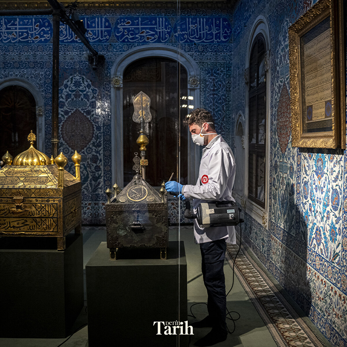 Ramazan ayının yaklaşması sebebiyle Topkapı Sarayı içerisindeki Mukaddes Emanetler Dairesi'nde sergilenen eserlerde detaylı temizlik ve bakım çalışmaları yapıldı.