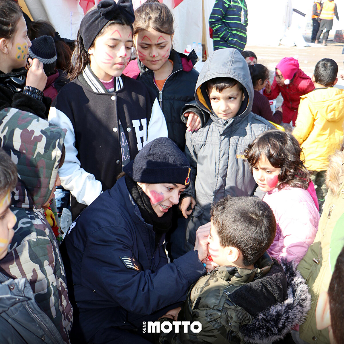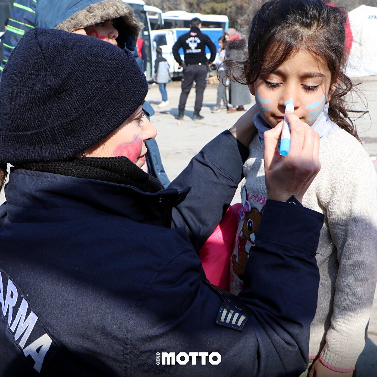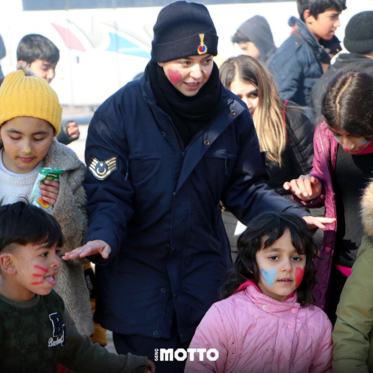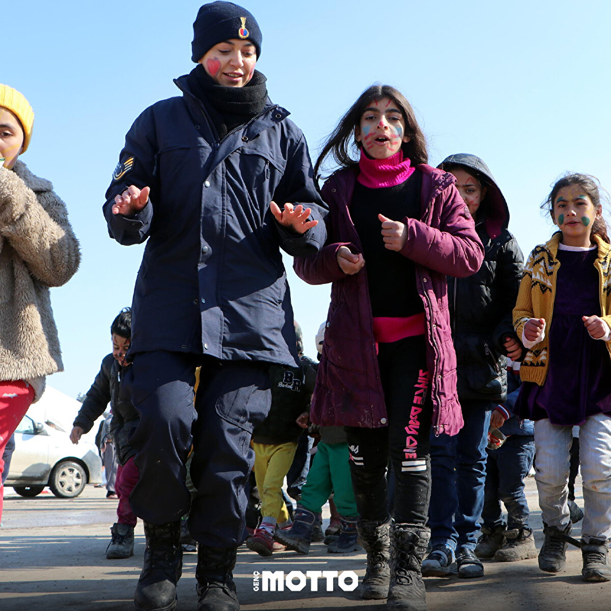 Jandarma Astsubay Üstçavuş Belkıs Şahiner çocukların saçlarını yapıp, yüzlerini boyayarak oyunlar oynadı