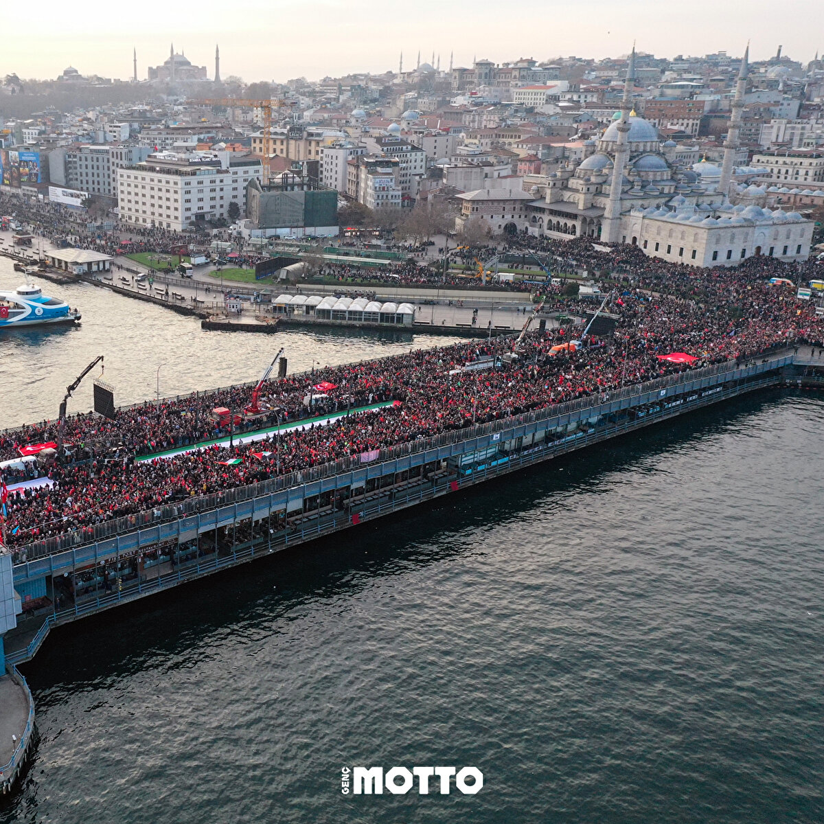 On binler, "Şehitlerimize rahmet, Filistin'e destek, İsrail'e lanet" yürüyüşü için Galata Köprüsü'nde!