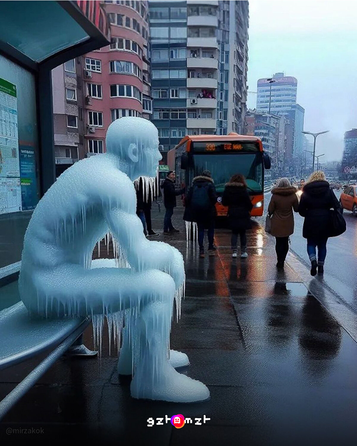 Ankara, Türkiye'nin başkenti olmanın yanı sıra, kış mevsiminde dondurucu soğukları ve ayazıyla da ünlüdür. Bu şehir, bozkır ikliminin etkisi altında olduğu için kış aylarında termometreler sıklıkla düşer ve soğuk rüzgarlar şehri sarar. Ancak, Ankara'nın soğuğu sadece bir hava durumu değil, aynı zamanda bu kenti şekillendiren bir özelliktir. Ankara'nın soğukluğu, kasvetli bir griliğin üzerine serpiştirilmiş beyaz bir örtüyle birleştiğinde, şehir bembeyaz bir büyüye bürünür. Bu zamanlarda insanların aldığı hal de yapay zeka ile gözlerimizin önüne serilmiş.
