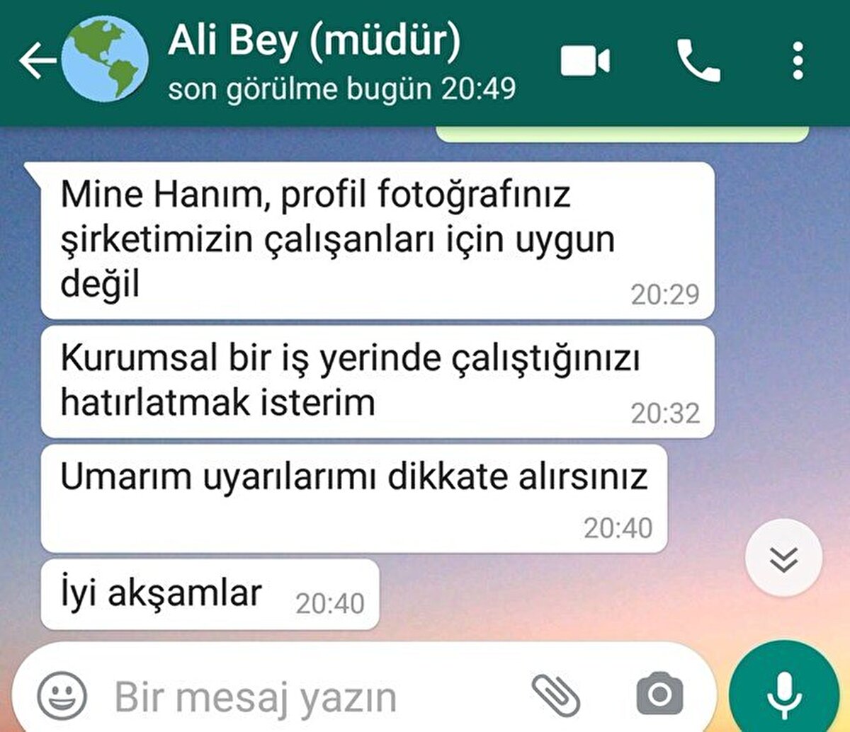 Kedisinin fotoğrafını WhatsApp uygulamasında profil fotoğrafı yapan çalışan, uyarı alıyor.