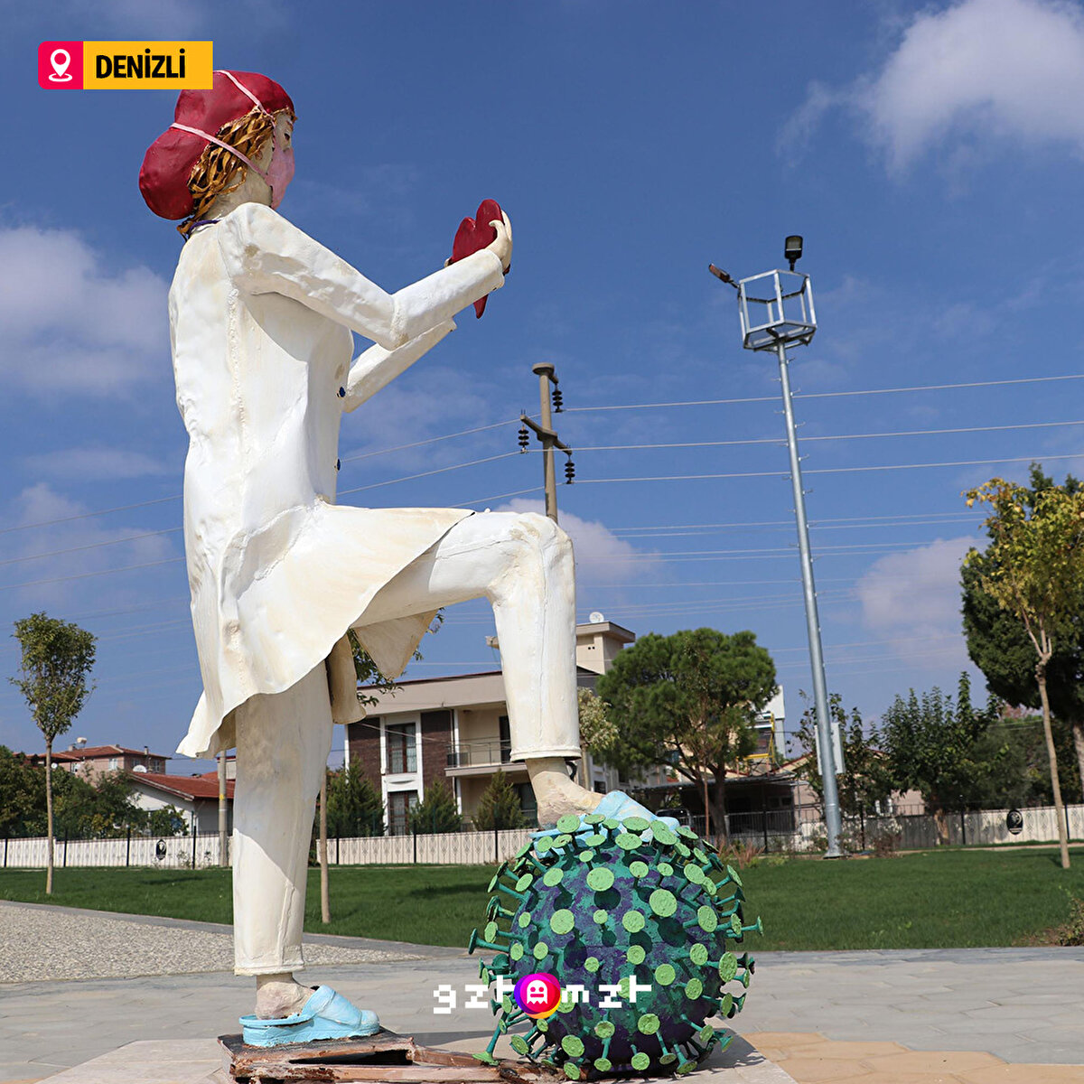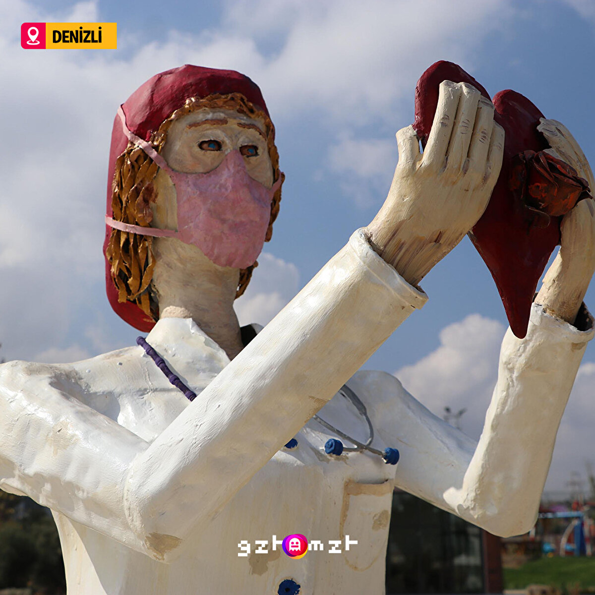 Denizli'de Merkezefendi Belediyesi'nin Covid-19 sürecinde yoğun bir çalışma dönemi geçiren sağlık çalışanlarına ithafen inşa ettiği tematik sağlık parkında yer alan heykellerin estetik ve mimari yapısı tartışmalara neden oldu