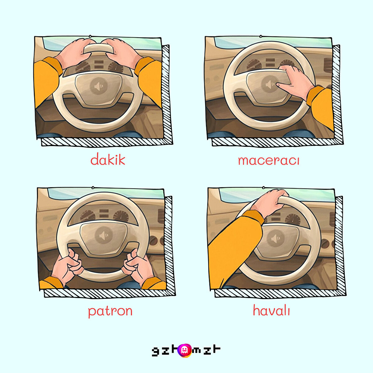 Çoğu sürücü, özellikle deneyimli olanlar arabalarını neredeyse bilinçsiz bir şekilde kullanırlar ve artık araba kullanırken ellerinin ne yaptığını takip etmezler. Ve bu bize onların doğası hakkında çok şey söyleyebilir. Kişiliğiniz hakkında daha fazla bilgi edinmek için sizi bu ilginç teste davet ediyoruz.