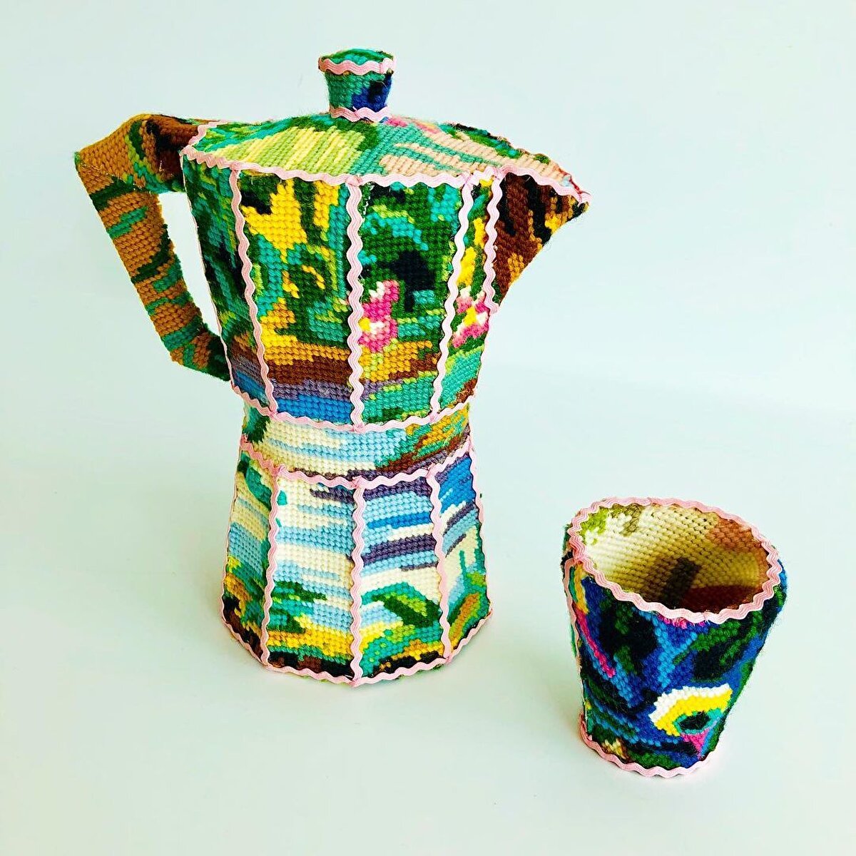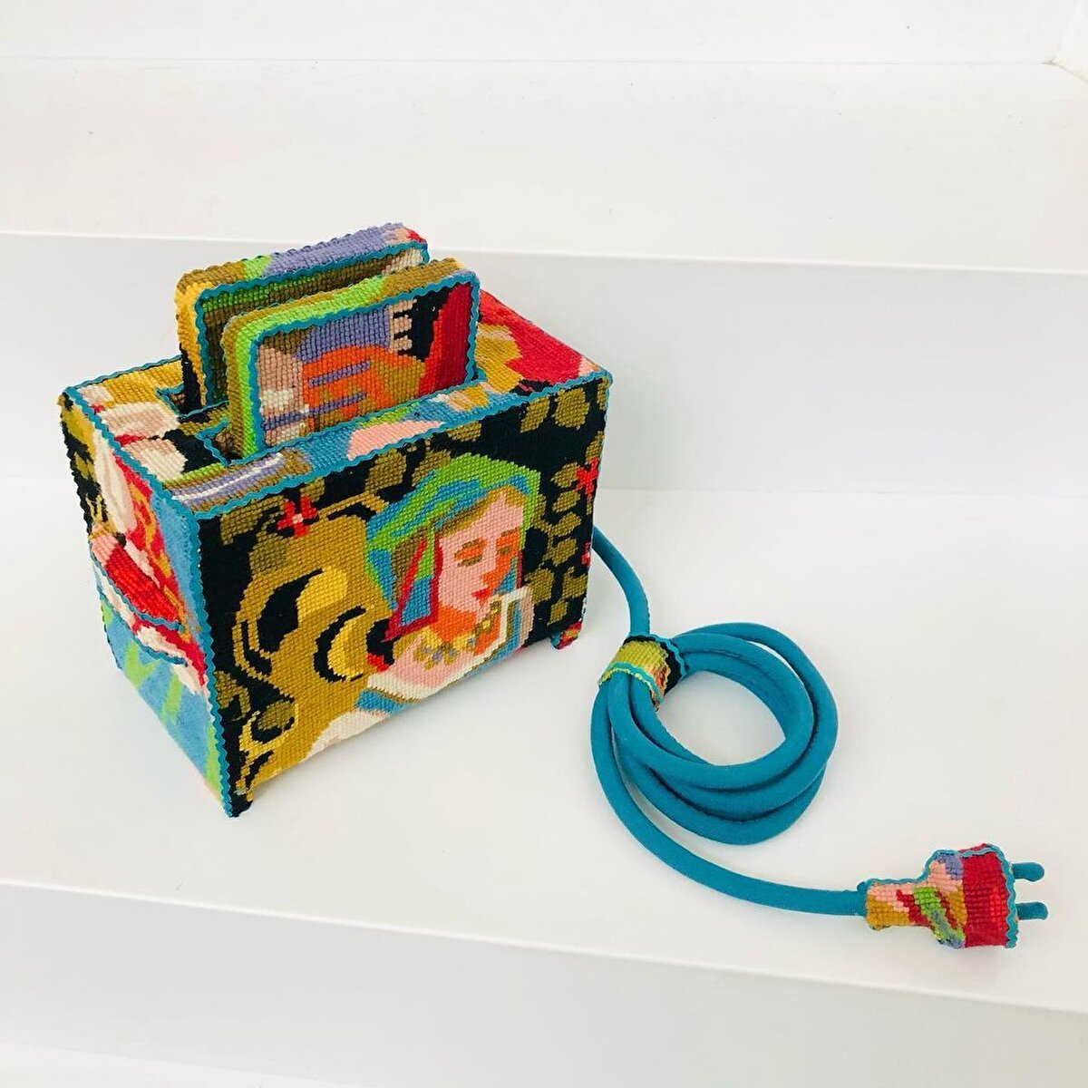Instagram kullanıcısı @uskonst evde oturmaktan sıkılmış olacak ki bulabildiği tüm eşyaları kanaviçe ile kaplamış. Kullanmaya kıyamayacağımız el emeklerini ekleyerek artık işe yaramayan eşyaları görsel bir şölene çevirmiş. İşlemeleri en ince detayına kadar düşünülmüş bu objeleri biz çok beğendik.