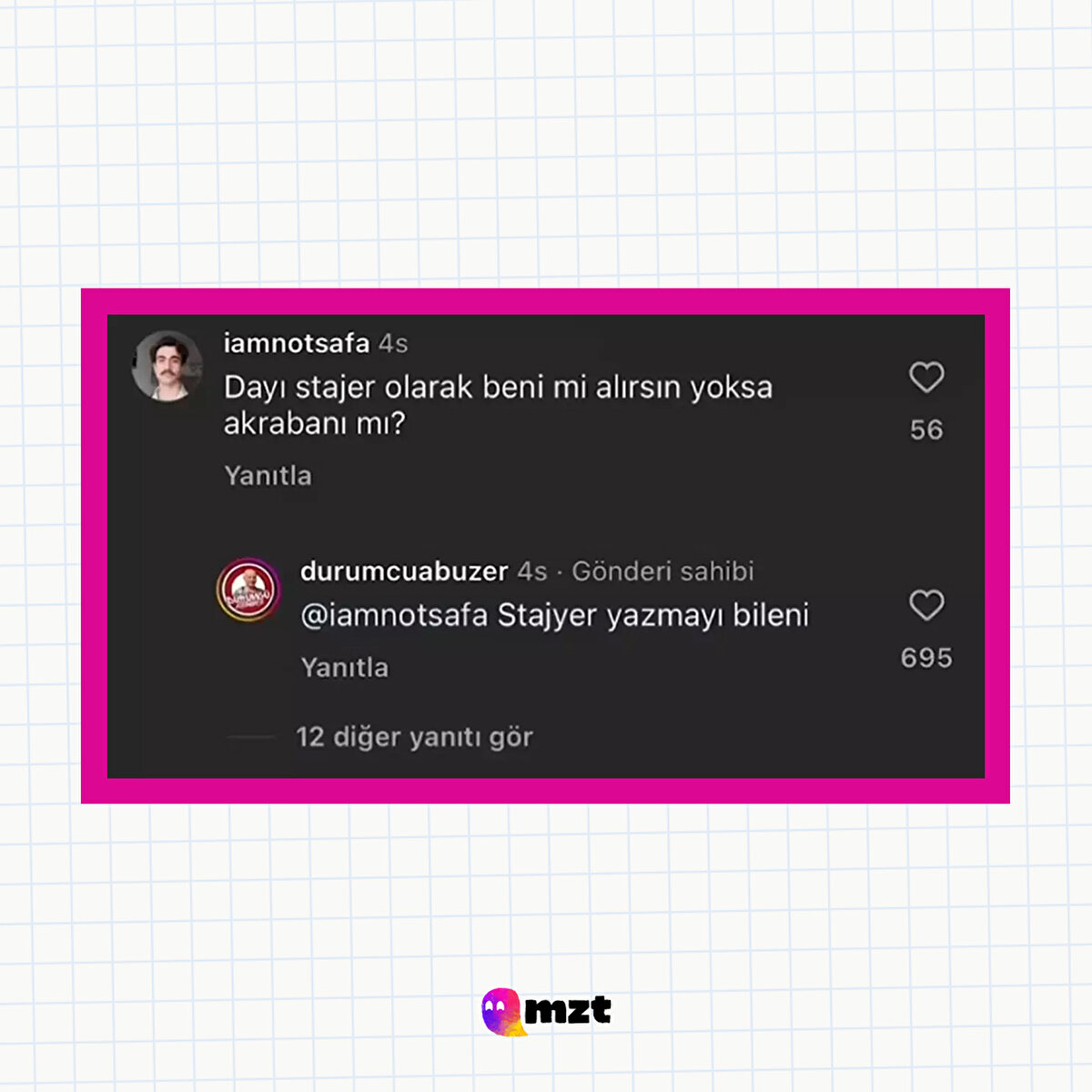 Hayatın içerisinde hepimizin zaman zaman karşılaştığı, hazırcevaplıkta çığır açmış olan bazı tanıdıklarımız olmuştur. Bu insanlara her ne kadar sosyal yaşantımız içerisinde denk geliyor olsak da daha önce hiç dürümcülerin bu meziyetlerini sergiledikleri bir ana tanık olmamıştık.