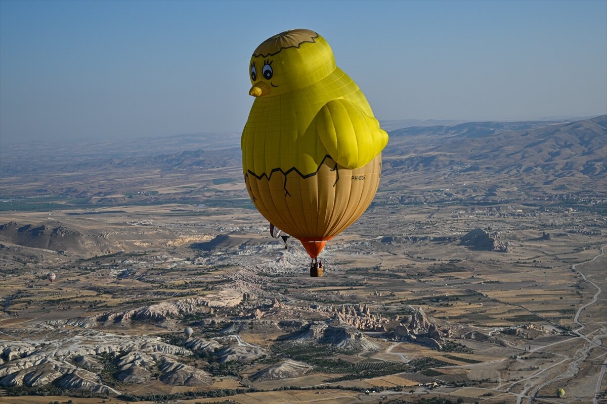Kapadokya'da bugün havalanan sıcak hava balonlarının çeşitli karakter ve gökyüzünü ilginç görüntüler ile süsleyecek yapıya sahip olduklarını görmek bizlerin yüzünü güldürmedi değil.
