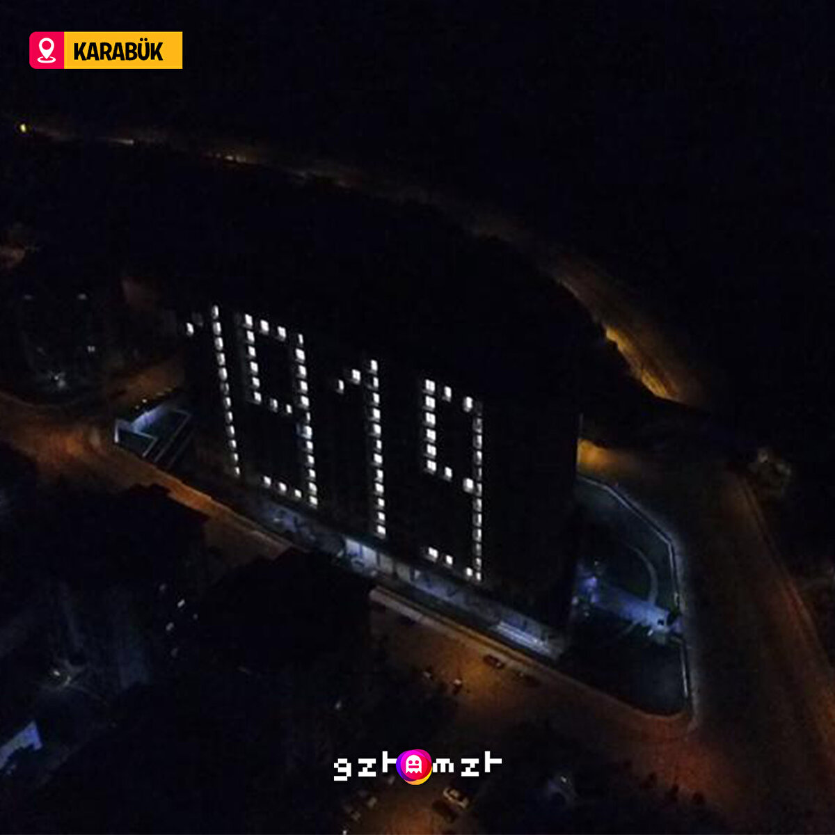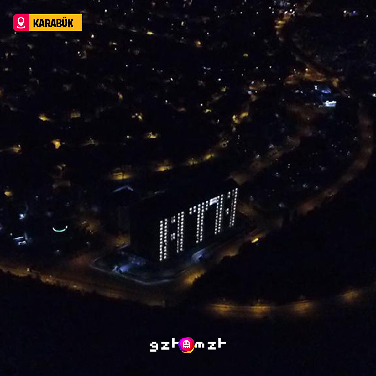 Kredi ve Yurtlar Kurumuna (KYK) bağlı Karabük Asiye Hatun ve Soğuksu yurtlarında, 19 Mayıs Atatürk'ü Anma, Gençlik ve Spor Bayramı dolayısıyla oda ışıklarıyla "ATA" ve "1919" yazısı oluşturuldu.