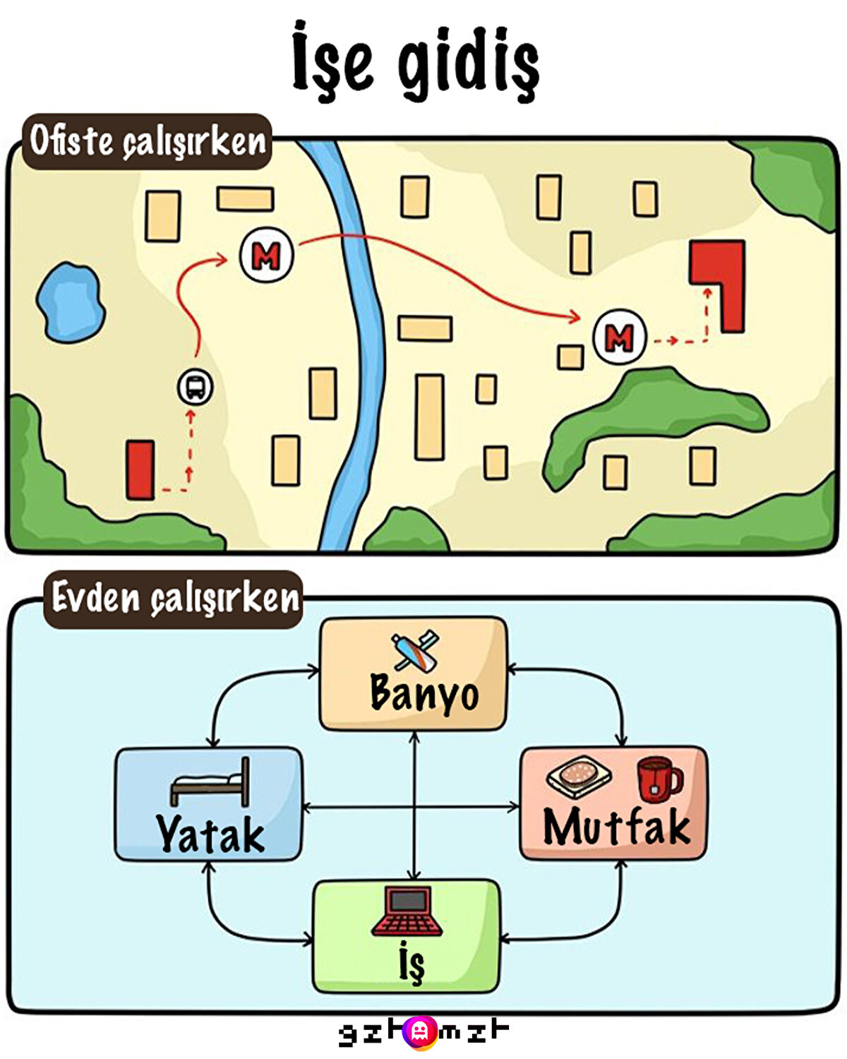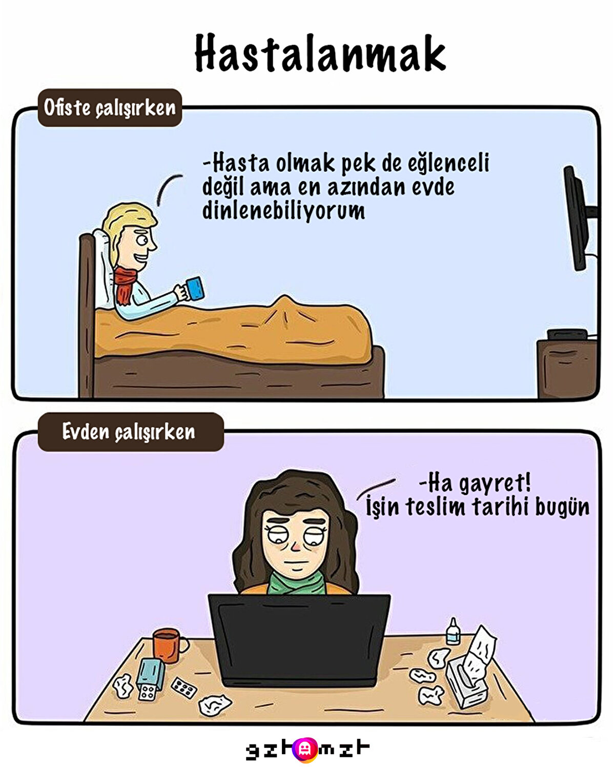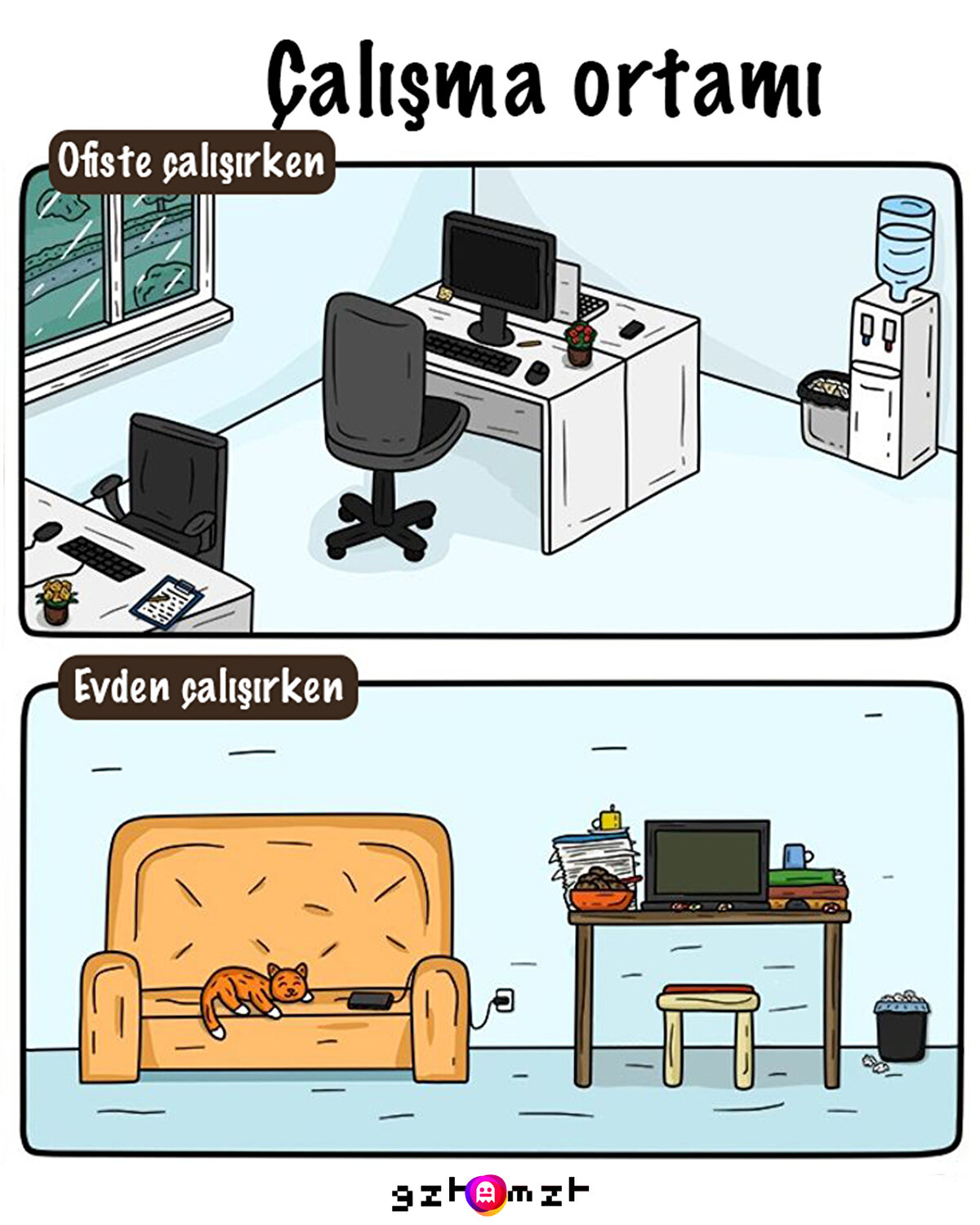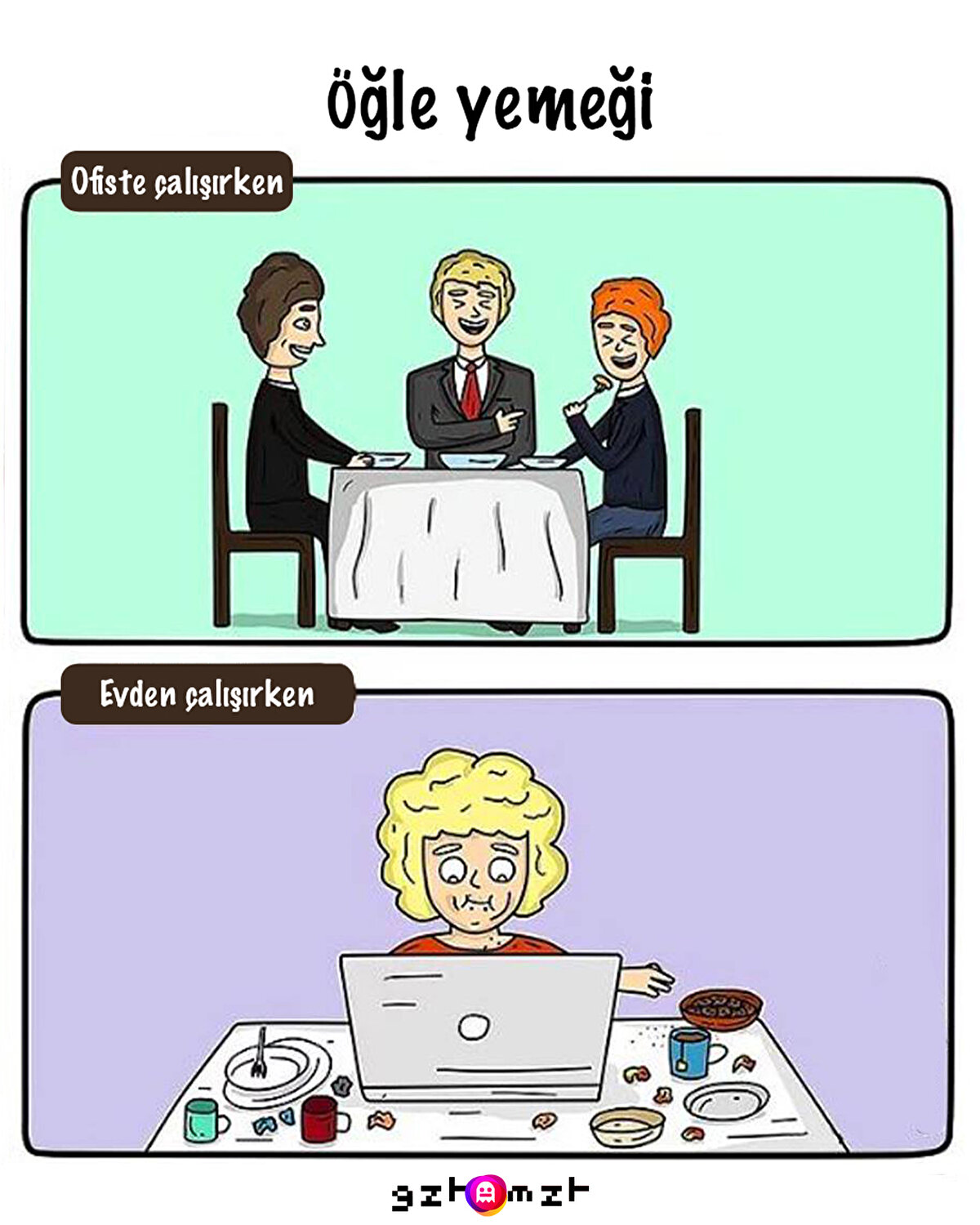 Pandemi sürecinde evden çalışan pek çok kişi bu düzene alışmış olacak ki ofise dönünde zorlananlar oldu. Ofiste çalışmanın tadı da ayrı oluyor canım diyemeyeceğiz hiç, evde olanların halini gördükçe tadımız kaçıyor çünkü. Biz yine 3 otobüsle işe gitmeye devam etsek de öğle arasındaki eğlenceli yemeklerimizi hiçbir şeye değiştiremeyiz.