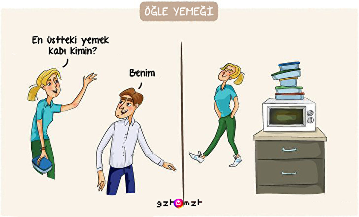 Birçoğumuz hayatımızın büyük bir kısmını iş yerinde geçiriyoruz ve her ofisin kendi geleneği ve özellikleri var. Güne başlarken, öğle yemeğinde ve iş arkadaşlarıyla ilişkilere dair yaygın durumlar var. Bu durumları esprili bir şekilde anlatan 7 çizimle karşınızdayız.