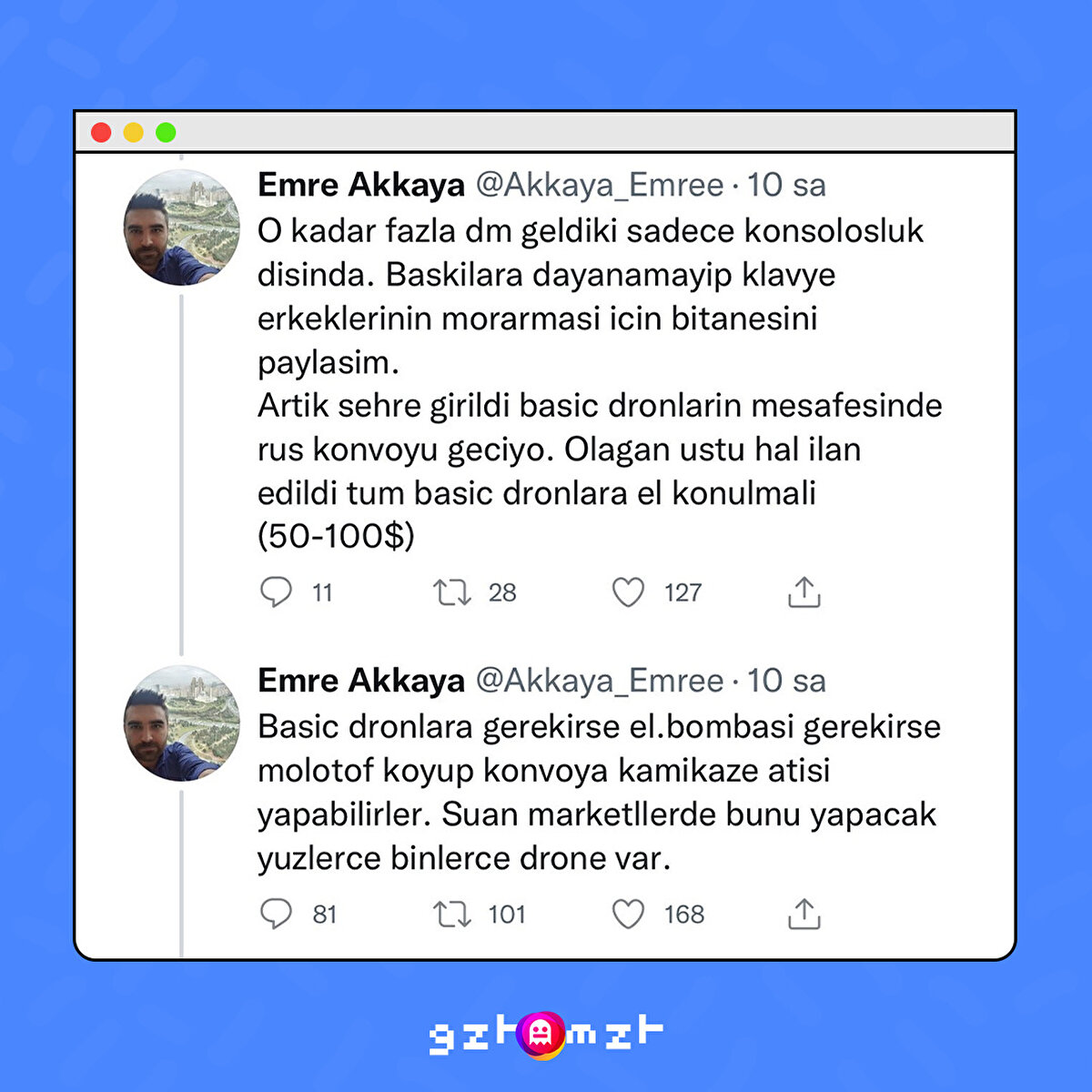 İşgalin seyrini değiştiren o adam sahalara indi! Muhtemelen 10 bölümden az Kurtlar Vadisi izlenmiş... Stratejist kardeşimiz 10 bölümü tamamlasaydı 'marketten drone almak' fikrinden öteye gidebileceğinden emindik. Kendisine 2 sezon Kurtlar Vadisi yazıyoruz.
