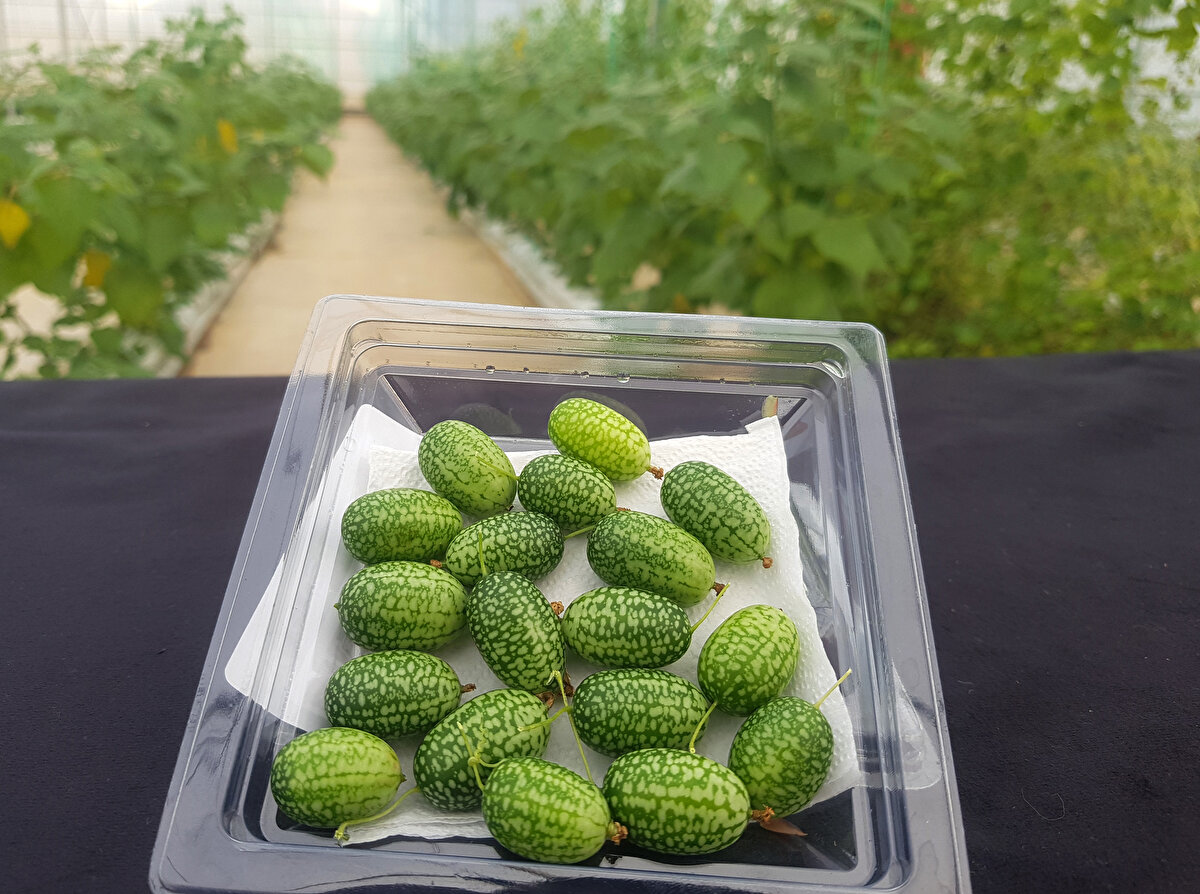Antalya'da bir tarım firmasının, mini sebzeler kategorisindeki yeni ürünü minyatür karpuz, görenleri şaşırtıyor. Ağırlığı sadece 5 gram olan mini karpuzun tadı ise salatalığı andırıyor.