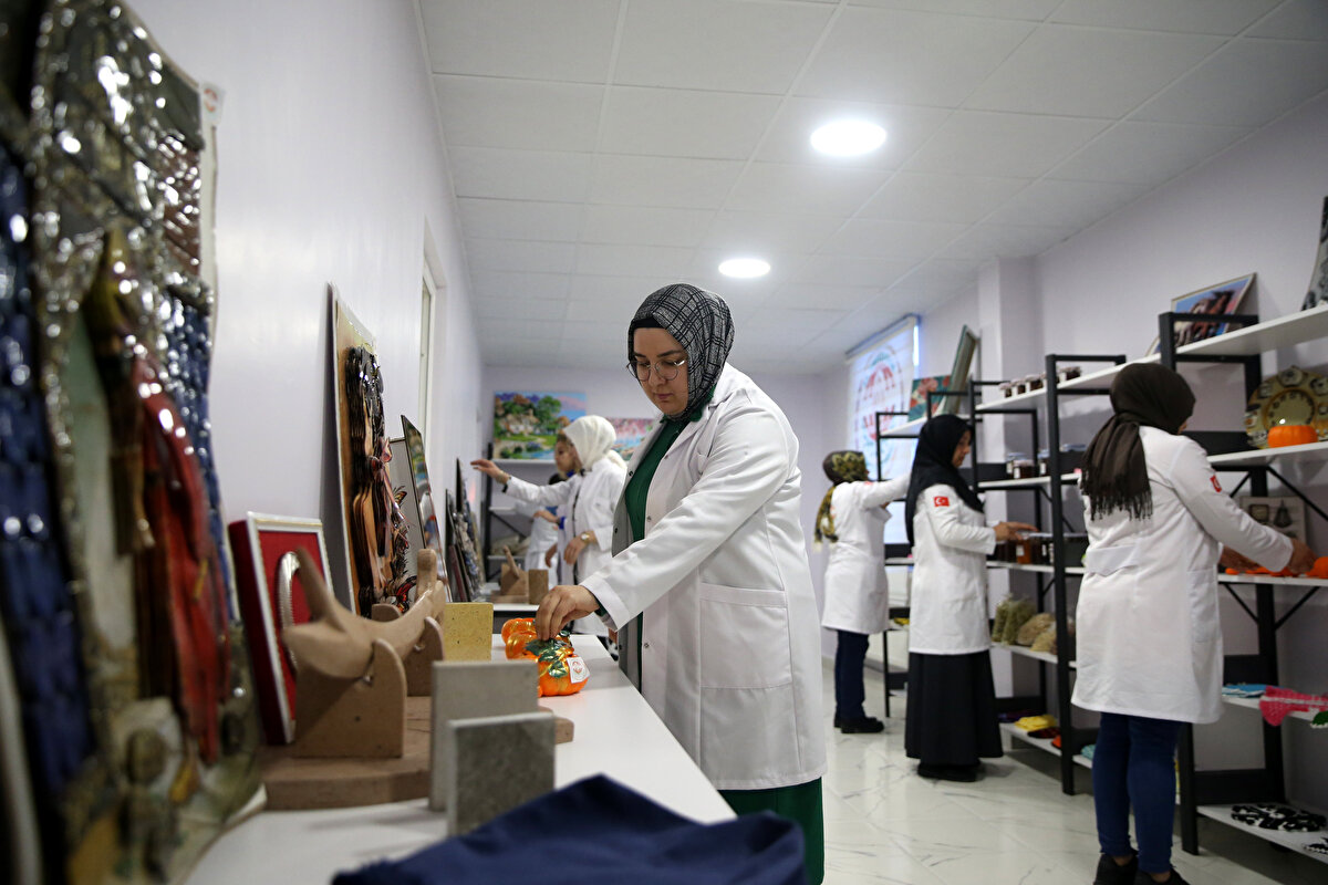 Kaymakamlık ve belediye desteğiyle oluşturulan 100 metrekarelik çadırda istiridye mantarı yetiştirmek için temin edilen kompostlar ile üretime başlayan kadınlar, ayrıca kaymakamlığın tahsis ettiği binada ördükleri el işlerini ve çeşitli malzemelerden ürettikleri hediyelik eşyaları da satışa sunuyor.