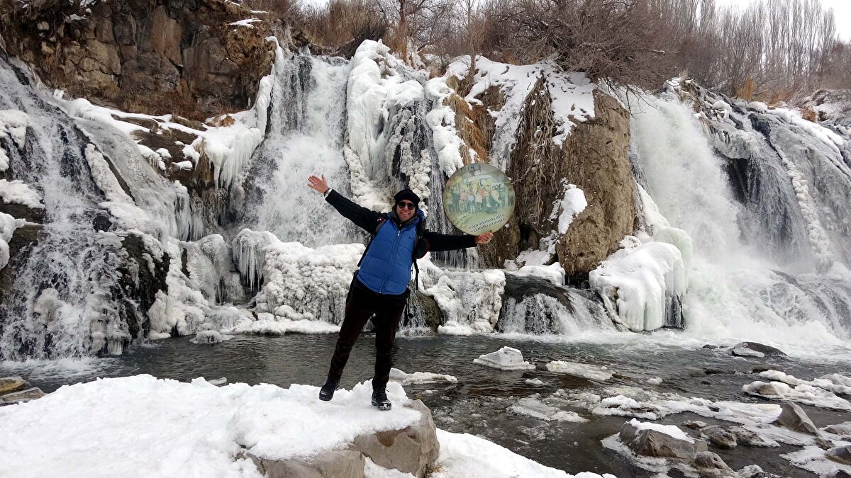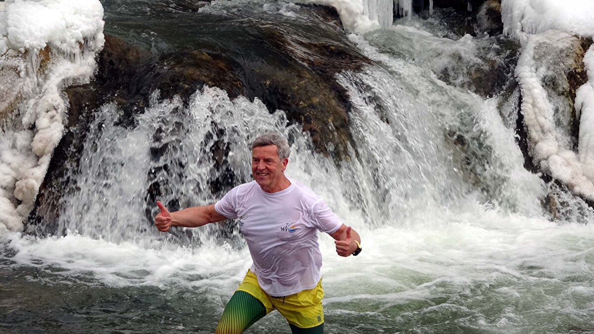 -15 derece onları durdurmadı: Donan şelalede yüzdüler