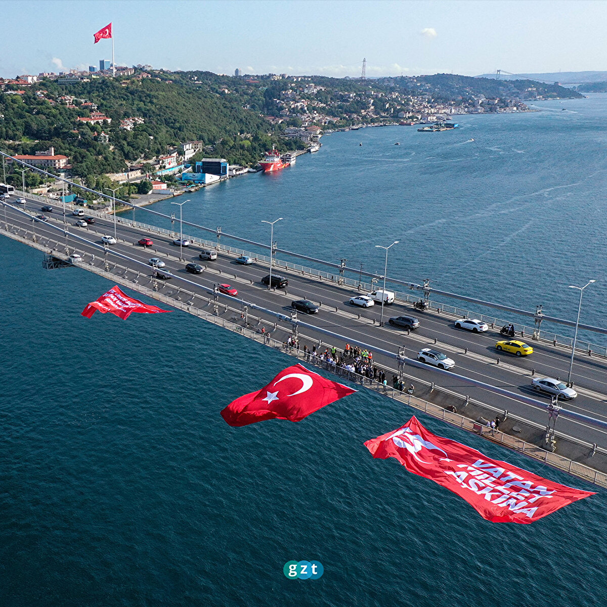 15 Temmuz Derneği ve İstanbul Valiliğince, 15 Temmuz Demokrasi ve Milli Birlik Günü dolayısıyla 15 Temmuz Şehitler Köprüsü'ne, Türk bayrağı ile üzerinde''7 Yıl önce bugün burada 34 can Vatan uğruna şehit oldu. Rahmet ve minnetle'' ve ''Vatan millet aşkına'' yazılı dev afişler asıldı.