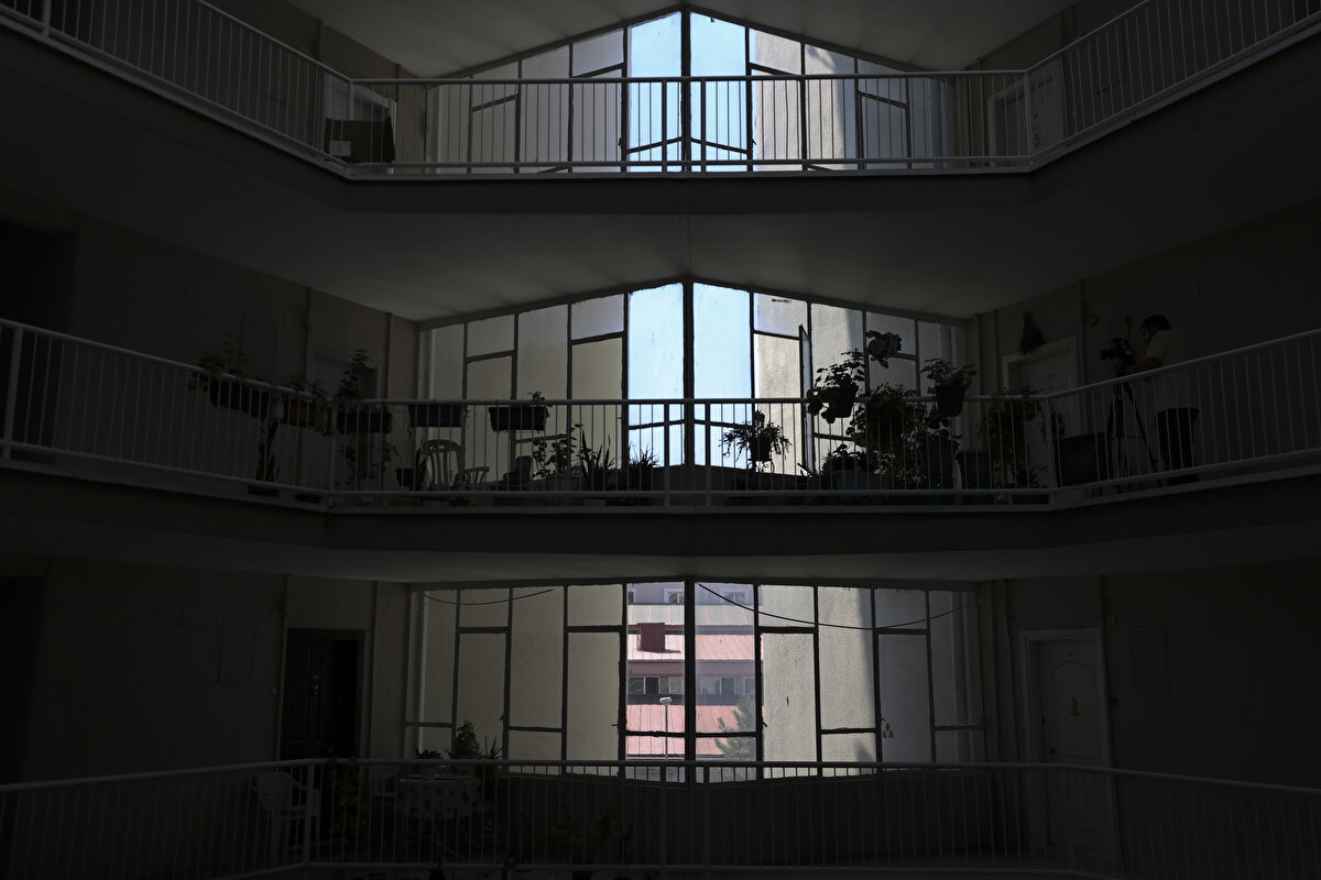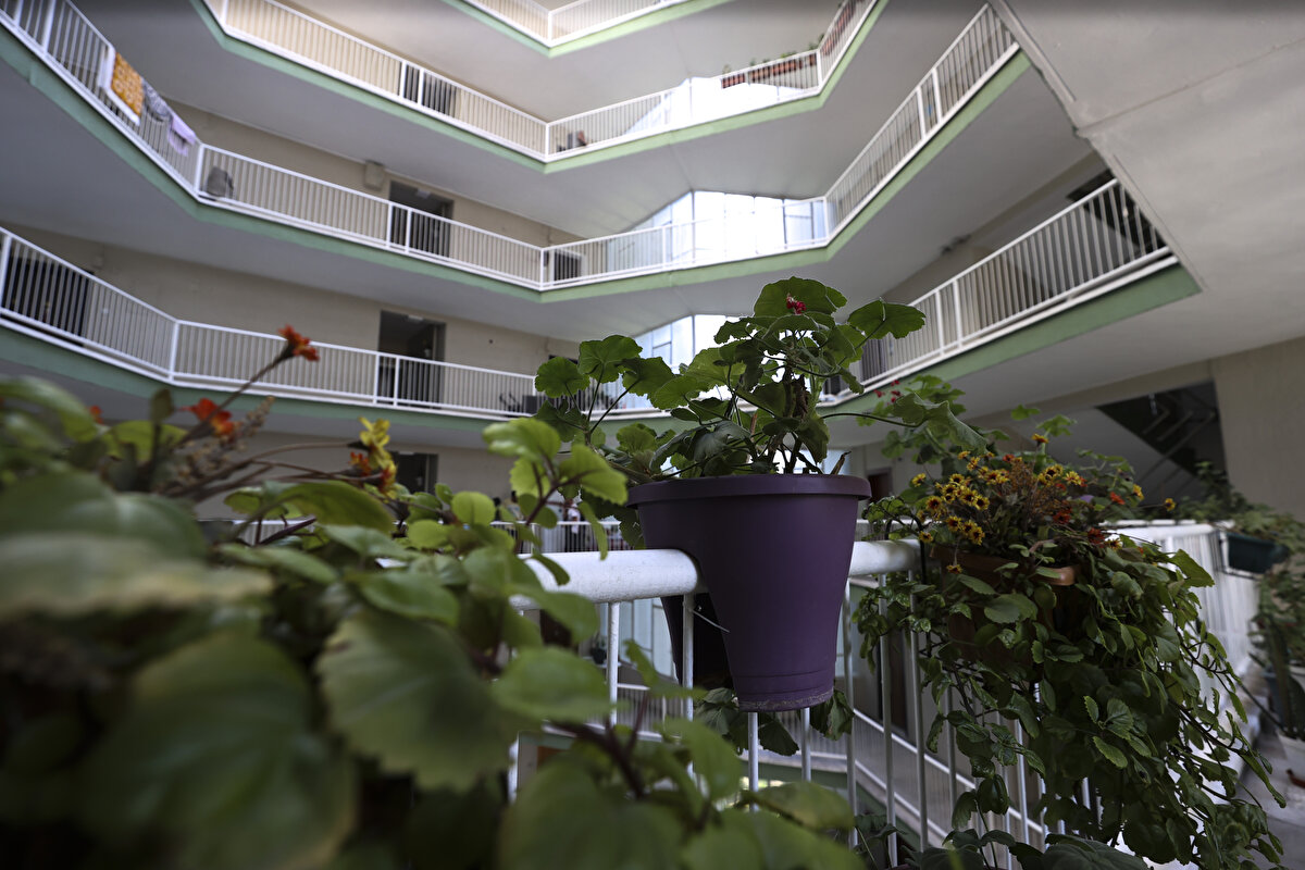 Özellikle sosyal medyada ilgi odağı haline gelen blokların mimarisi, bina içi süs havuzları ve yeşil alanları AA ekibi tarafından dronla görüntülendi.