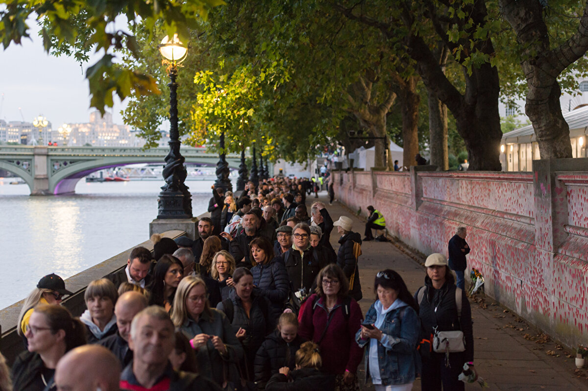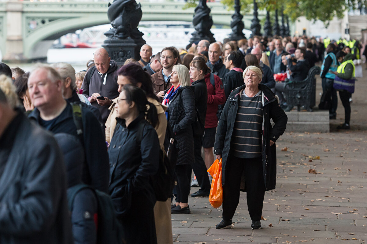 Kraliçe'nin tabutunu görmek isteyen on binlerce kişi, Westminster Hall'ün önünde uzun kuyruklar oluşturdu.