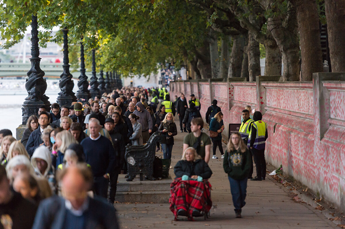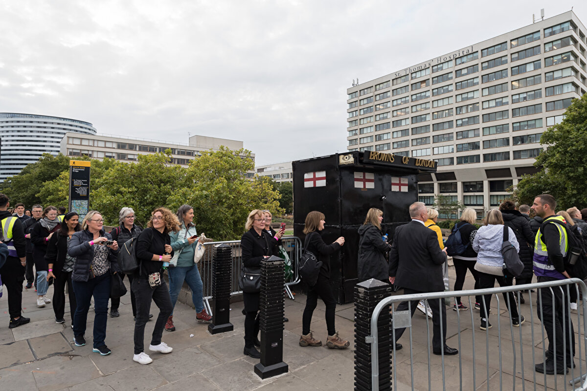 İngiliz hükümet yetkilileri yaptığı açıklamada, Kraliçe'nin tabutunu ziyaret edeceklerin, havalimanlarındaki gibi çok sıkı güvenlikten geçeceği ve kalabalıkların uzun kuyruklara hazırlıklı olması uyarısında bulunmuştu.