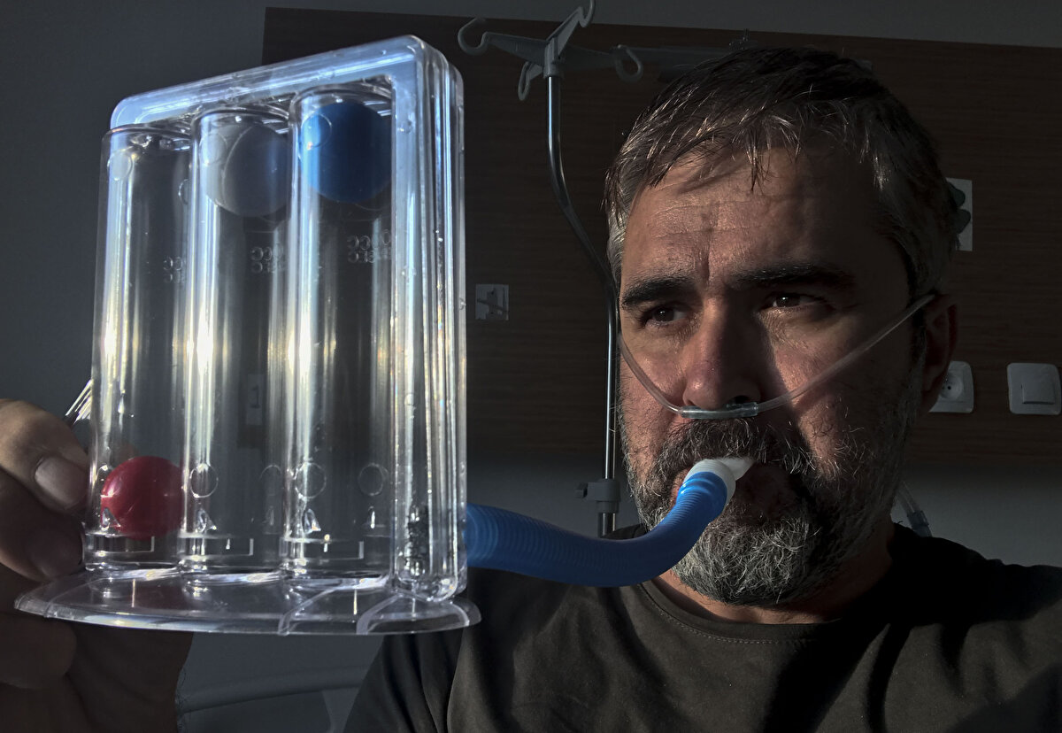 Anadolu Ajansı (AA) foto muhabiri Raşit Aydoğan, 17 gününü yoğun bakımda geçirdiği 26 günlük yeni tip koronavirüs tedavisindeki zorlu süreci, hastane odasında cep telefonuyla çektiği fotoğraflarla gözler önüne serdi.
