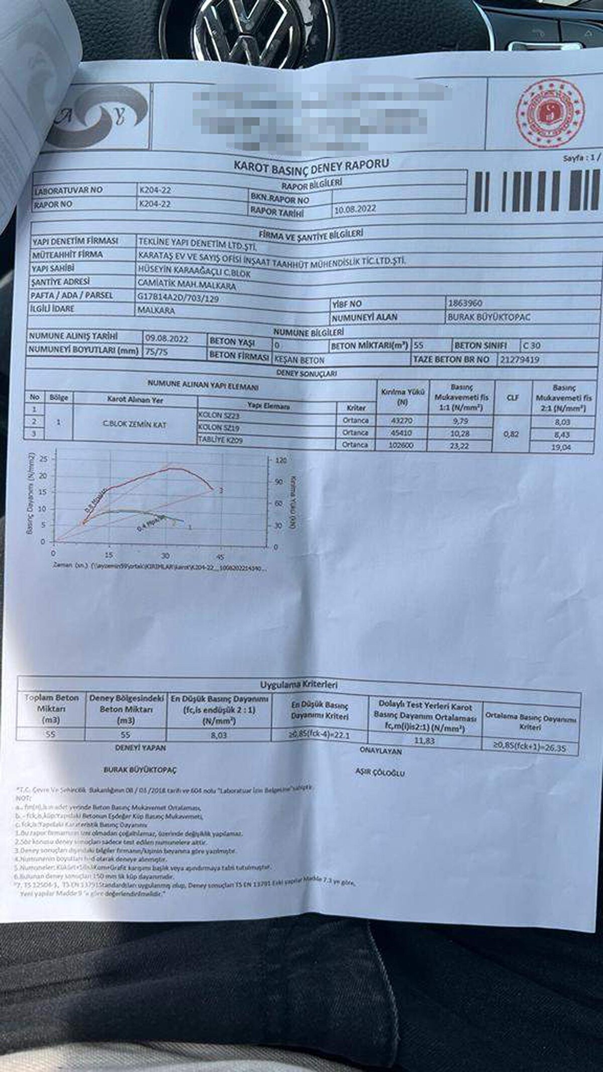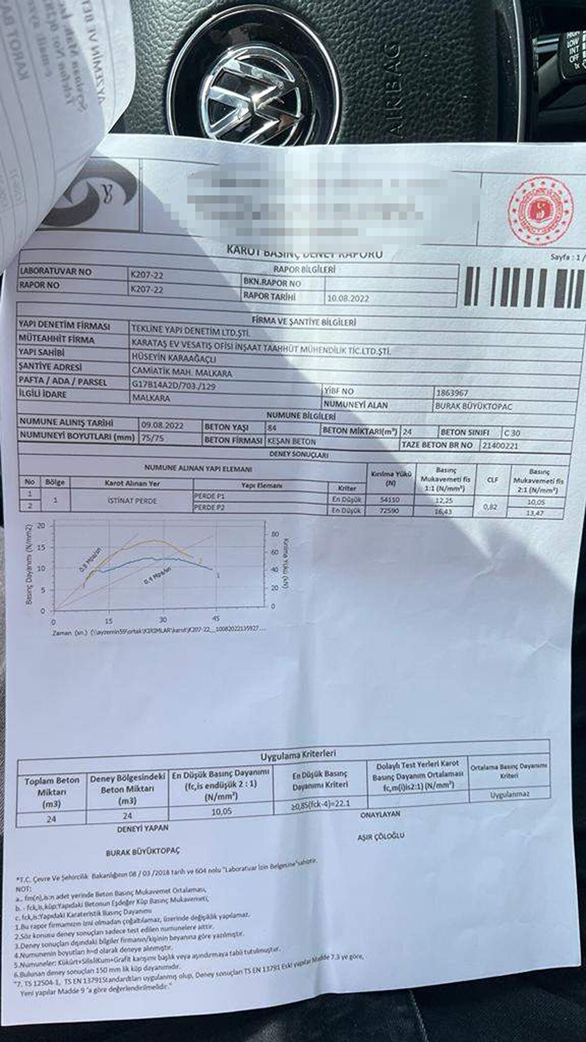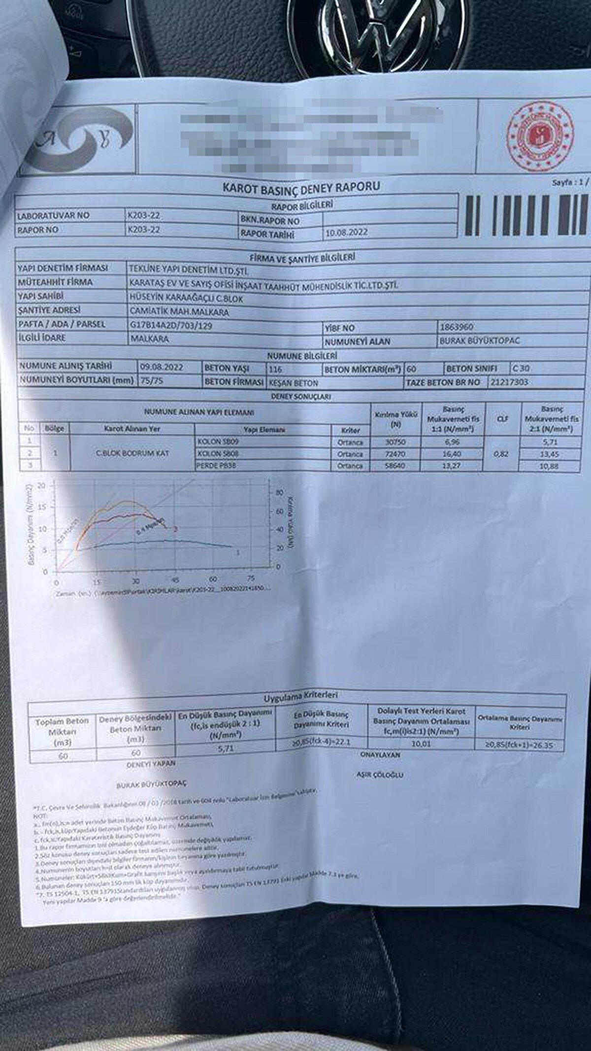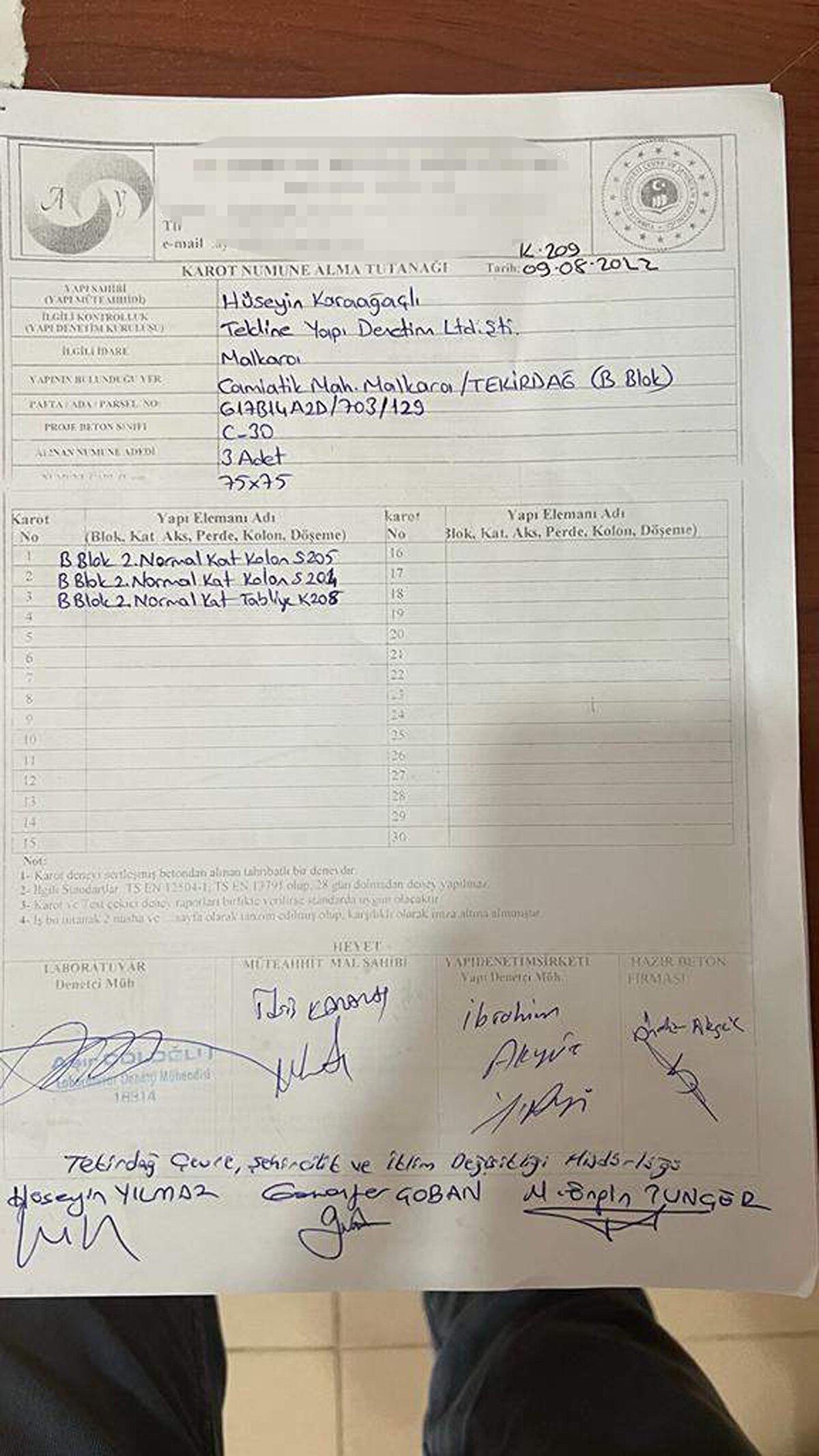 Bu tespiti yaptıktan sonra karot firmasının verdiği sonuçlara güvenmediğimiz için dilekçemizi hazırlayıp, Çevre, Şehircilik, İklim Değişikliği İl Müdürlüğü'ne başvurumuzu yaptık. Burada vicdanen rahat değiliz. Deprem bölgesinde yaşıyoruz. Karot alınması için dilekçe verdikten sonra müdürlükten yetkili kişiler geldiler. Burada kendi nezaretlerinde karotlar alındı. Ertesi gün laboratuvarda karot kırım işlemi gerçekleşti ve çok kötü olduğu ortaya çıktı. Bu aşamadan sonra artık bu inşaatı devam ettirmemizin vicdani olarak mümkün olmadığına karar verdik" dedi.