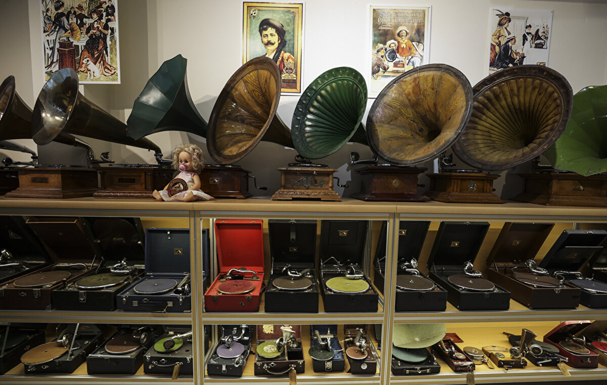 Kara'nın 165 parçadan oluşan koleksiyonunda 1897-1945 yılları arasında üretilmiş çanta, salon, cep ve çocuk türlerinde gramofonlar yer alıyor.