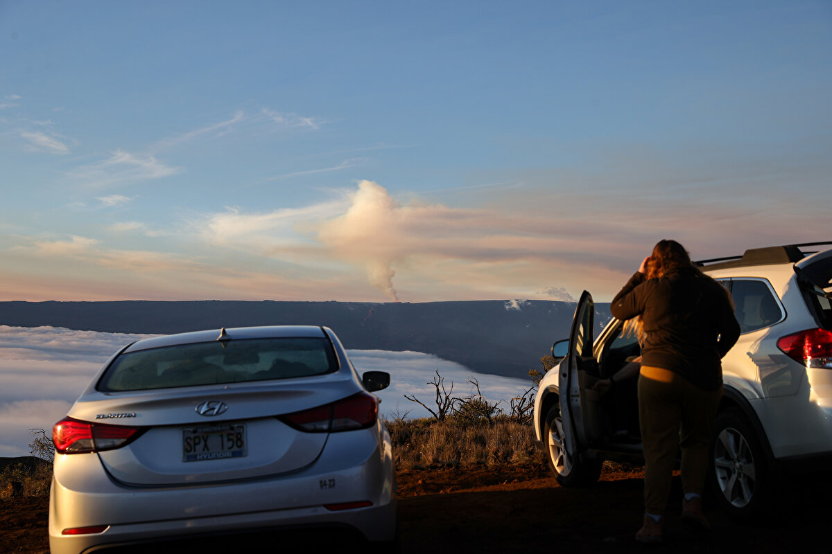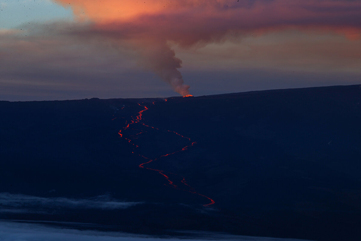 ABD'nin Hawaii takım adalarından Büyük Ada'da bulunan dünyanın en büyük yanardağı Mauna Loa'nın 38 yıl sonra yeniden patlaması sonrası lav akışı devam ederken dumanlar yükseldi.