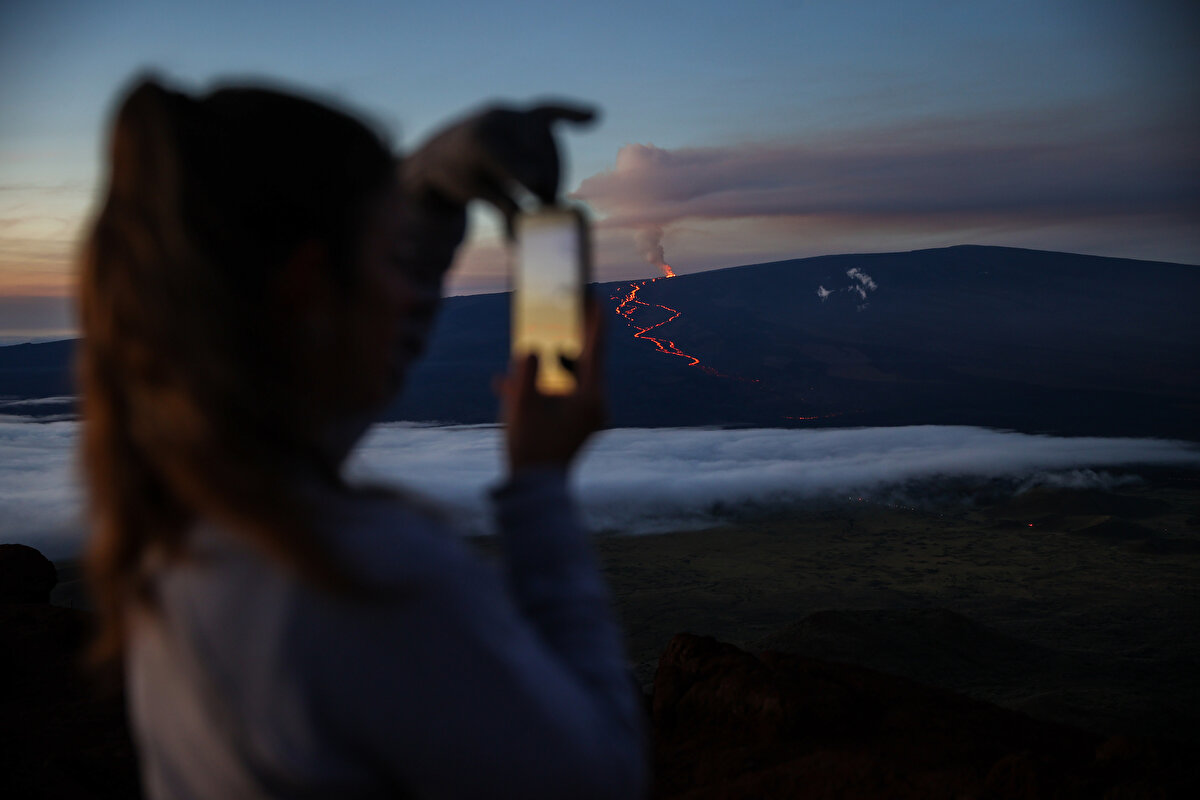 38 yıl sonra harekete geçen Hawaii'deki dünyanın en büyük aktif yanardağı Mauna Loa'da lav akışı devam ediyor. Diğer yandan çok sayıda insan, bu anları görebilmek için yanardağ bölgesini ziyaret ediyor.