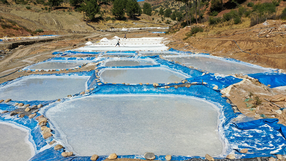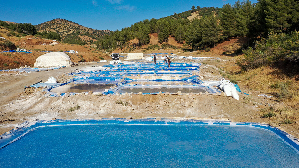 Batman'ın Kozluk ilçesinde köylülerce üretilen kaya tuzu, uzun uğraşlar sonucu, biriktirme havuzlarına alınan doğal kaynak suyunun buharlaşmasıyla elde ediliyor.
