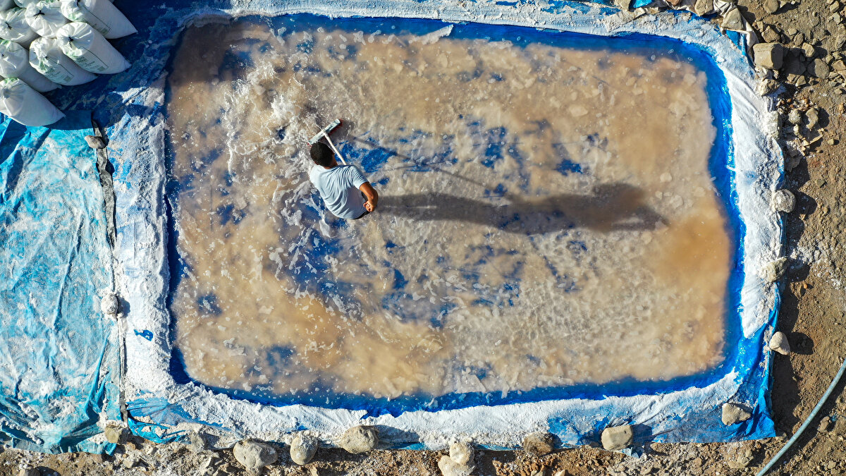 "Atalarımız bu kuyulardan yararlandı. Biz de kaynakları gördükten sonra farklı kaynaklar elde etmeye çalıştık. Çıkan suyu 4 metrelik kuyulara aktarıyoruz. Bu kuyularda bir hafta dinlendiriyoruz, tuzluluk oranının daha fazla olması için. Ardından havuzlara aktarıyoruz. Bir hafta bekledikten sonra buharlaşan suyun içinde tuz dibe çöküyor ve tuzu çıkarıyoruz. Kuruması için 2 gün bekletiyoruz ve ardından çuvallara dolduruyoruz."