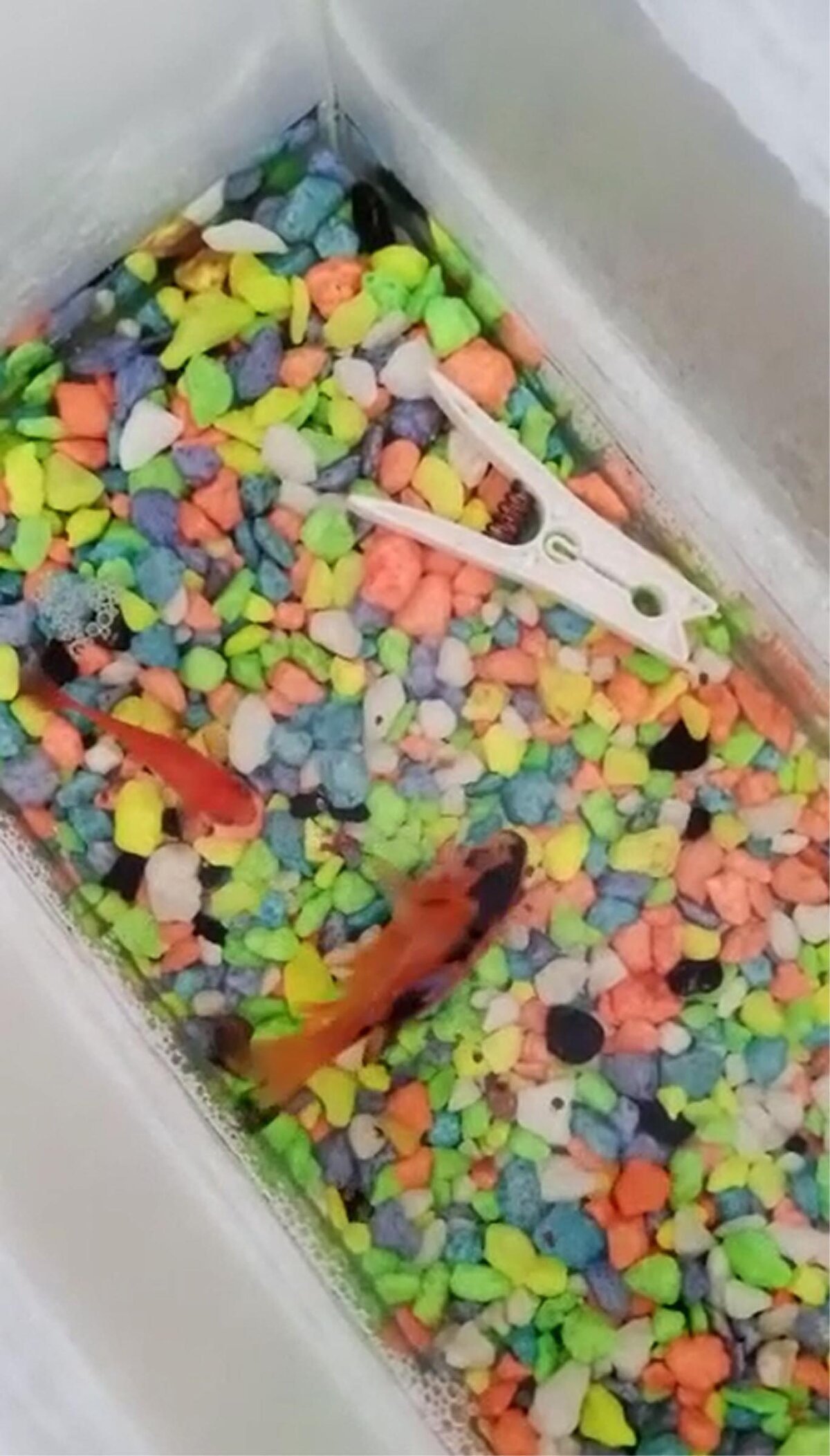 Osmaniye'de depremde hasar gören evine 44 gün sonra giren Gökhan Akyürek, az miktarda su bulunan akvaryumdaki 2 Japon balığının yaşadığını gördü. Akyürek, geçen süre içerisinde yem verilmediğini belirttiği balıkları cep telefonuyla kayda aldı.