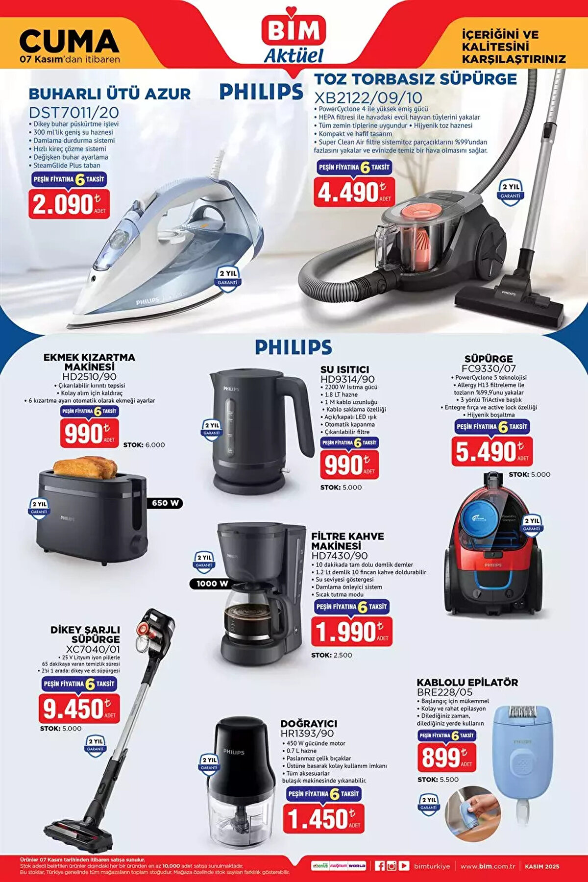 BİM 7 Kasım 2025 aktüel kataloğu yayımlandı! Bu hafta Cuma günü satışa çıkan ürünler arasında teknolojiden mutfak aletlerine kadar pek çok dikkat çekici seçenek yer alıyor. BİM raflarında bu hafta; Casper VIA A40 cep telefonu, Kumtel Ankastre Set, saç düzleştirici, tost makinesi, buharlı el ütüsü, elektrikli düdüklü tencere, mutfak tartısı ve kablosuz şarjlı sprey mop gibi birbirinden kullanışlı ürünler satışta. BİM her hafta olduğu gibi bu hafta da ev bütçesine katkı sağlayacak uygun fiyatlı ürünlerle müşterilerini buluşturuyor. Elektronikten kişisel bakıma, mutfak gereçlerinden ev temizlik ürünlerine kadar geniş bir yelpazeye sahip olan 7 Kasım BİM aktüel kataloğu 2025, vatandaşlar tarafından yoğun ilgi görüyor.