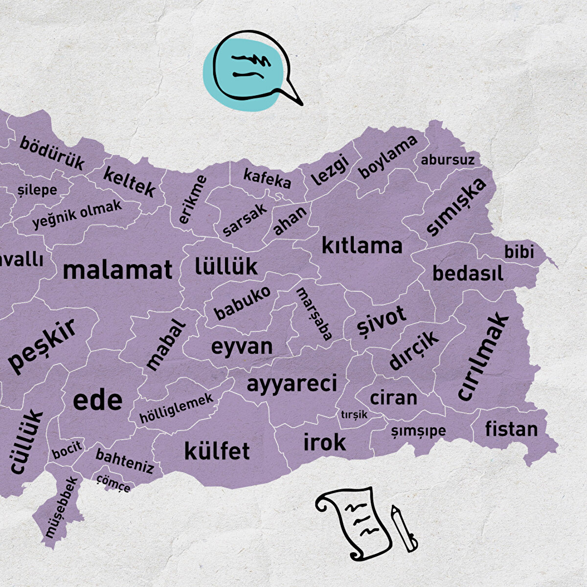 Türkiye'deki tüm şehirlerden derlediğimiz kelimeleri istifadenize sunuyoruz
