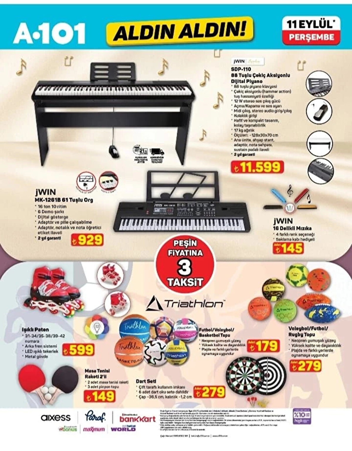 A101 market 11 Eylül 2025 Perşembe günü yeni aktüel ürünler kataloğunu yayınladı. Google TV'den küçük ev aletlerine, mutfak ürünlerinden elektronik fırsatlara kadar birçok indirimli ürün raflarda yerini alıyor.