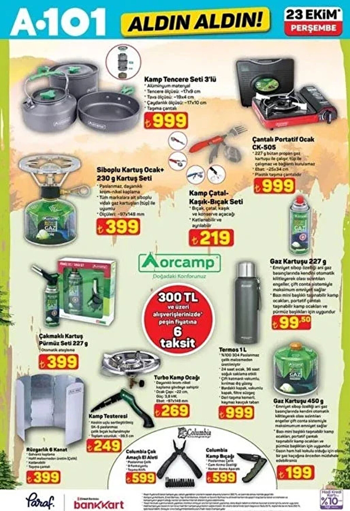 A101 aktüel 23 Ekim 2025 kataloğu yayınlandı. Bu hafta A101 Aldın Aldın broşürü ile 65" UHD Android TV, kırmızı mini buzdolabı, mikrodalga fırın, Belçika waffle makinesi, çantalı portatif ocak, 3'lü kamp tencere seti ve kışlık araç ürünleri gibi onlarca ürün indirimli fiyatlarla geliyor. İşte 23 Ekim A101 kataloğu tam liste...