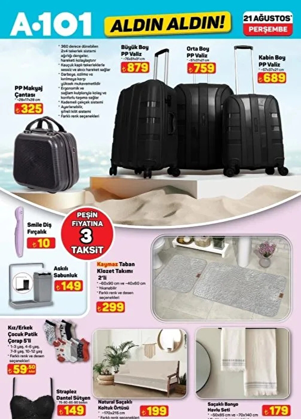 Okul alışverişini daha ekonomik hale getirmek isteyenler için A101, her yıl olduğu gibi bu yıl da geniş bir kırtasiye kataloğu hazırladı. Defter, kalem setleri, silgiler, pastel boyalar, kuru boyalar ve okul çantaları 21 Ağustos A101 aktüel ürünler kataloğu ile müşterilere sunuluyor.