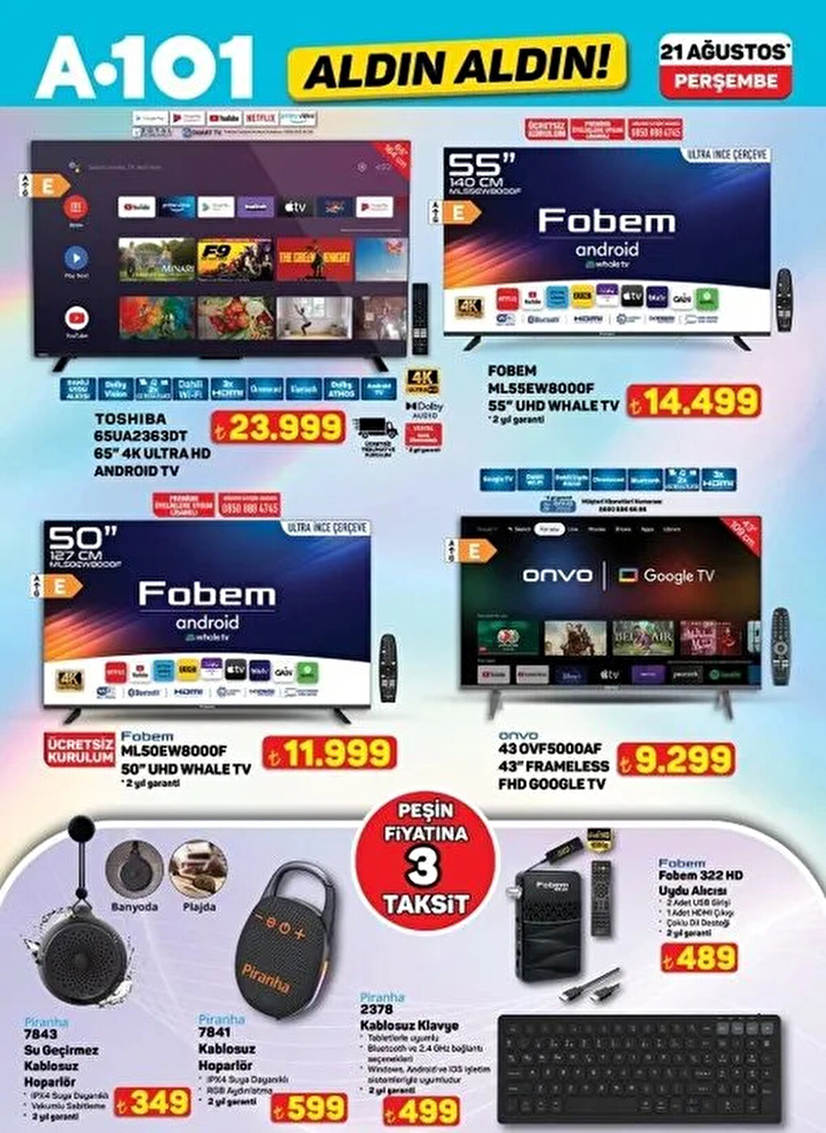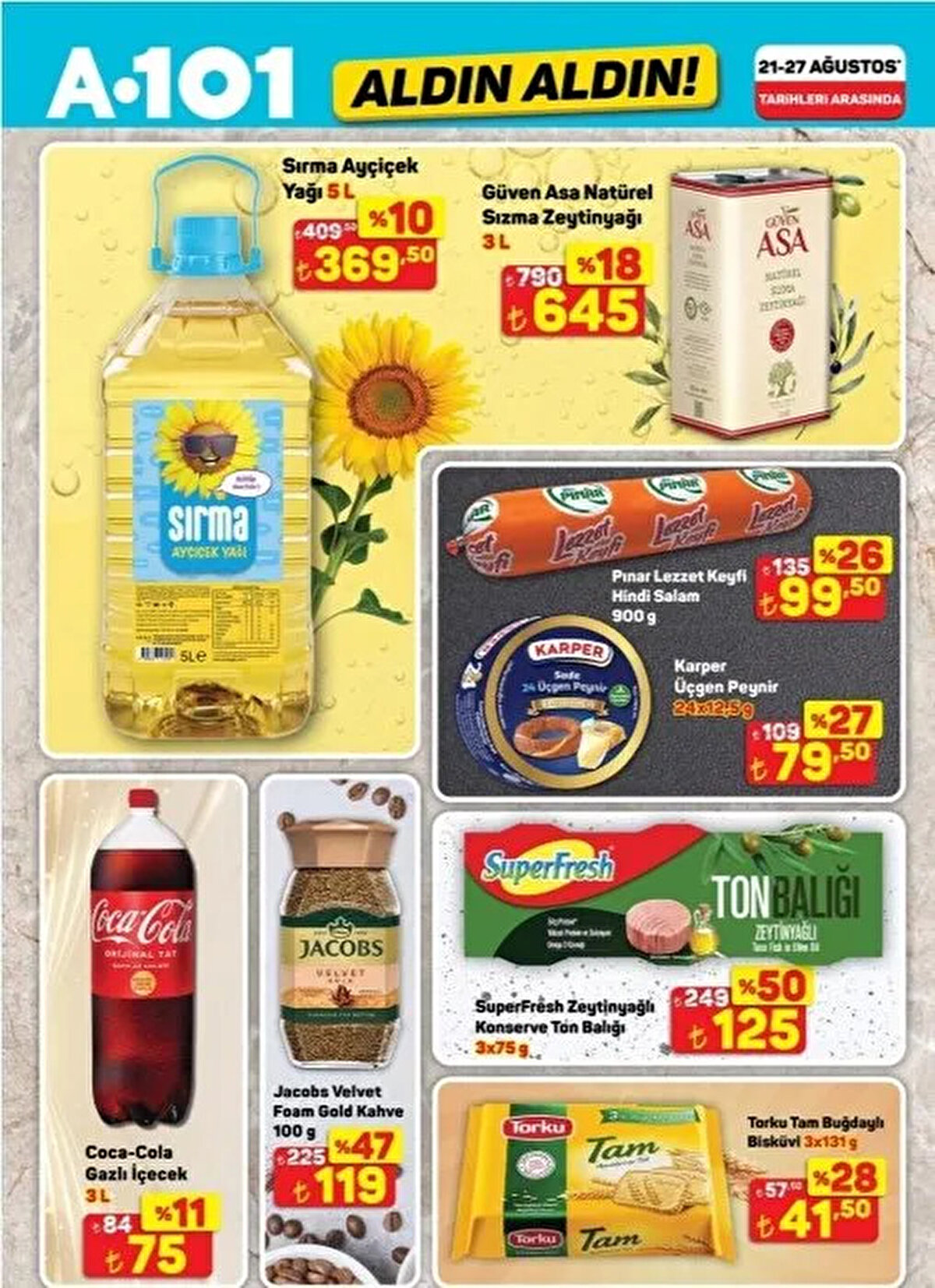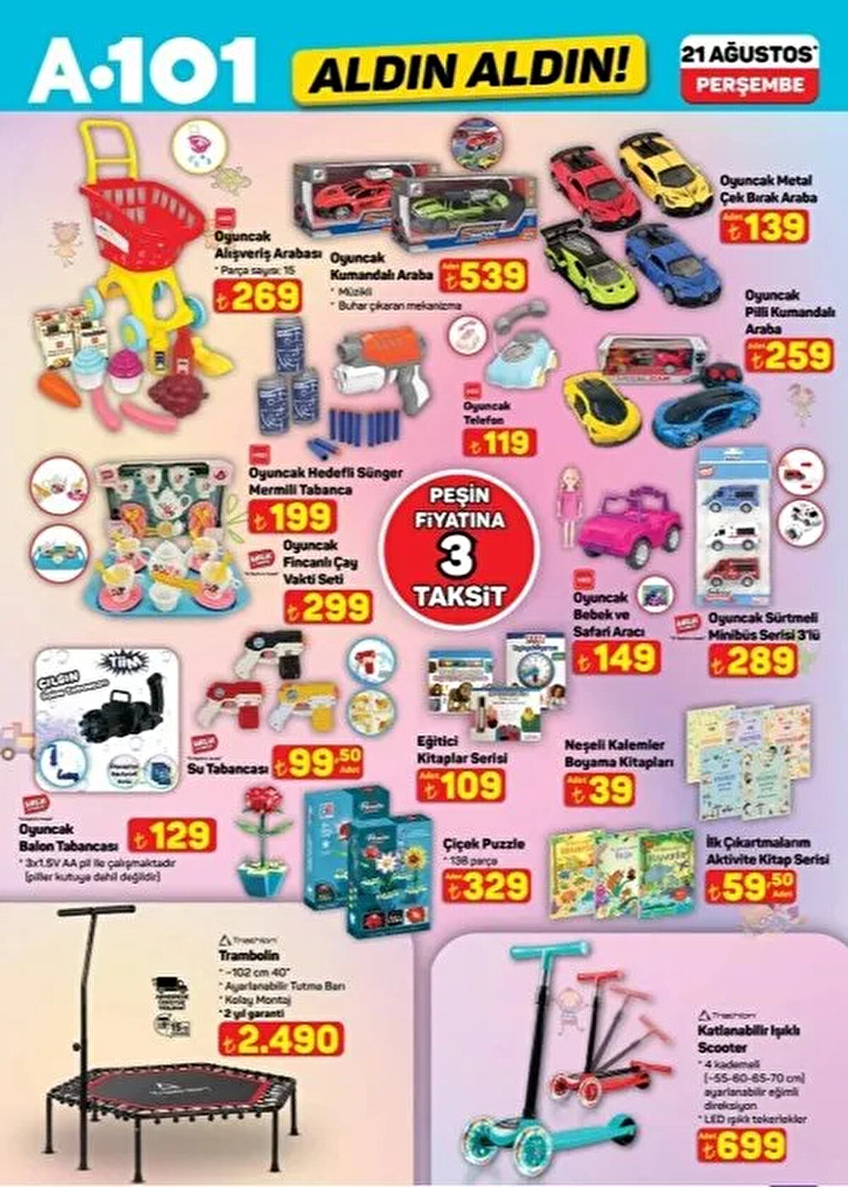 A101 marketleri, 21 Ağustos 2025 aktüel ürünler kataloğunu yayımladı. Yeni eğitim-öğretim yılı öncesinde öğrencilerin ve velilerin beklediği A101 kırtasiye kataloğu bu hafta raflarda yerini alıyor. Uygun fiyatlı okul çantası, defter, kalem, boya seti ve daha birçok kırtasiye ürünü A101'in indirimli aktüel ürünleri arasında satışa çıkıyor.