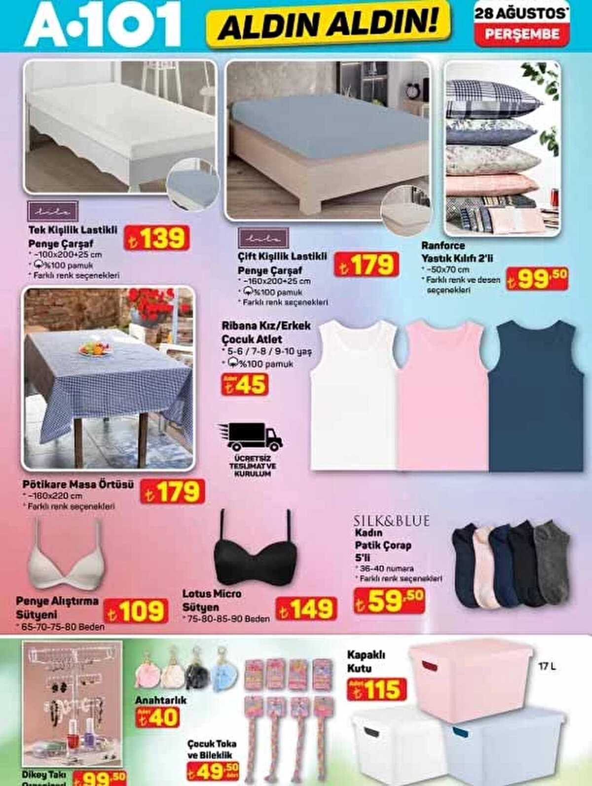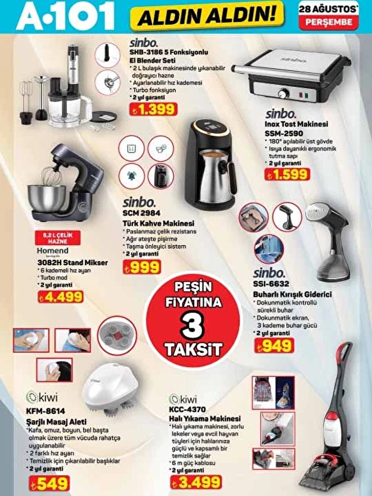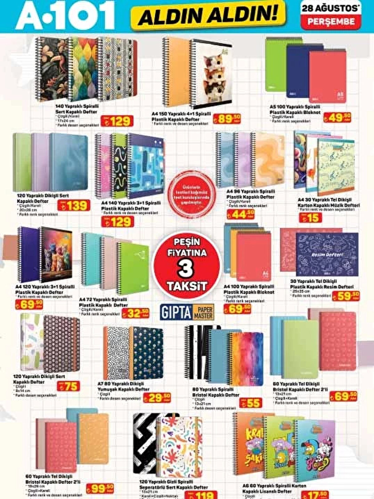 28 Ağustos 2025 A101 Aldın Aldın aktüel kataloğu yayınlandı! Okulların açılmasına kısa bir süre kala A101, öğrencilere ve ailelere özel kırtasiye ürünleri, okul çantaları, dijital su sebili, halı yıkama makinesi, şarjlı masaj aleti ve daha birçok indirimli ürünü raflara taşıyor. İşte A101 okul malzemeleri ve aktüel ürünler listesi!