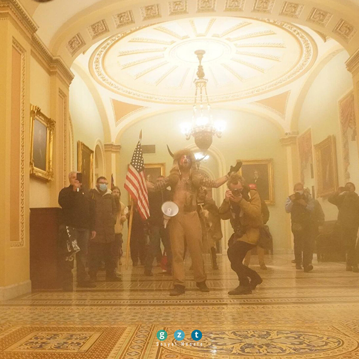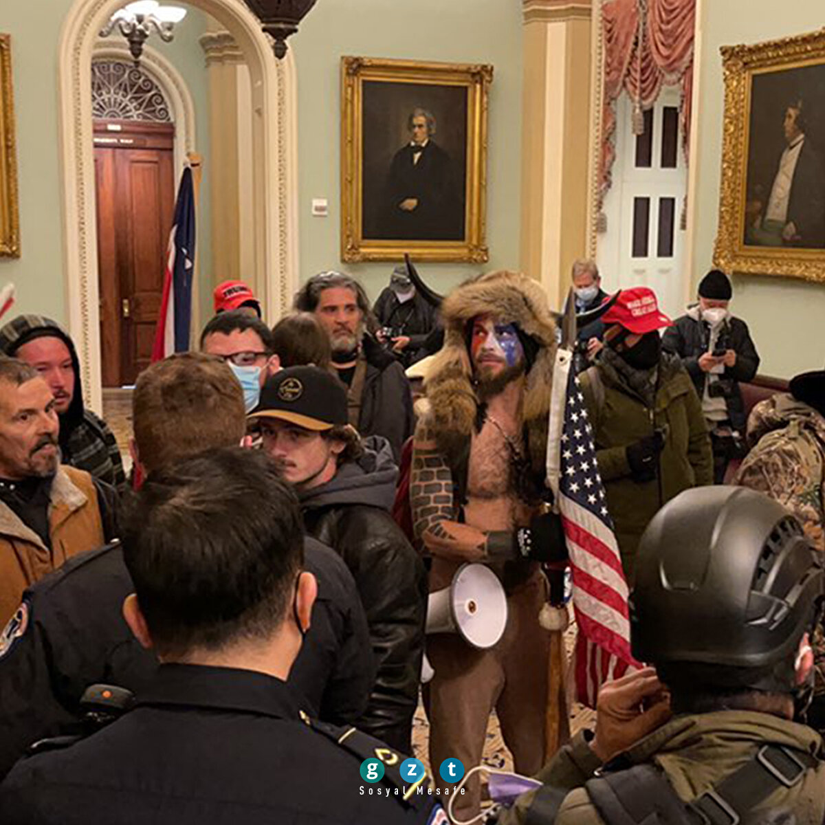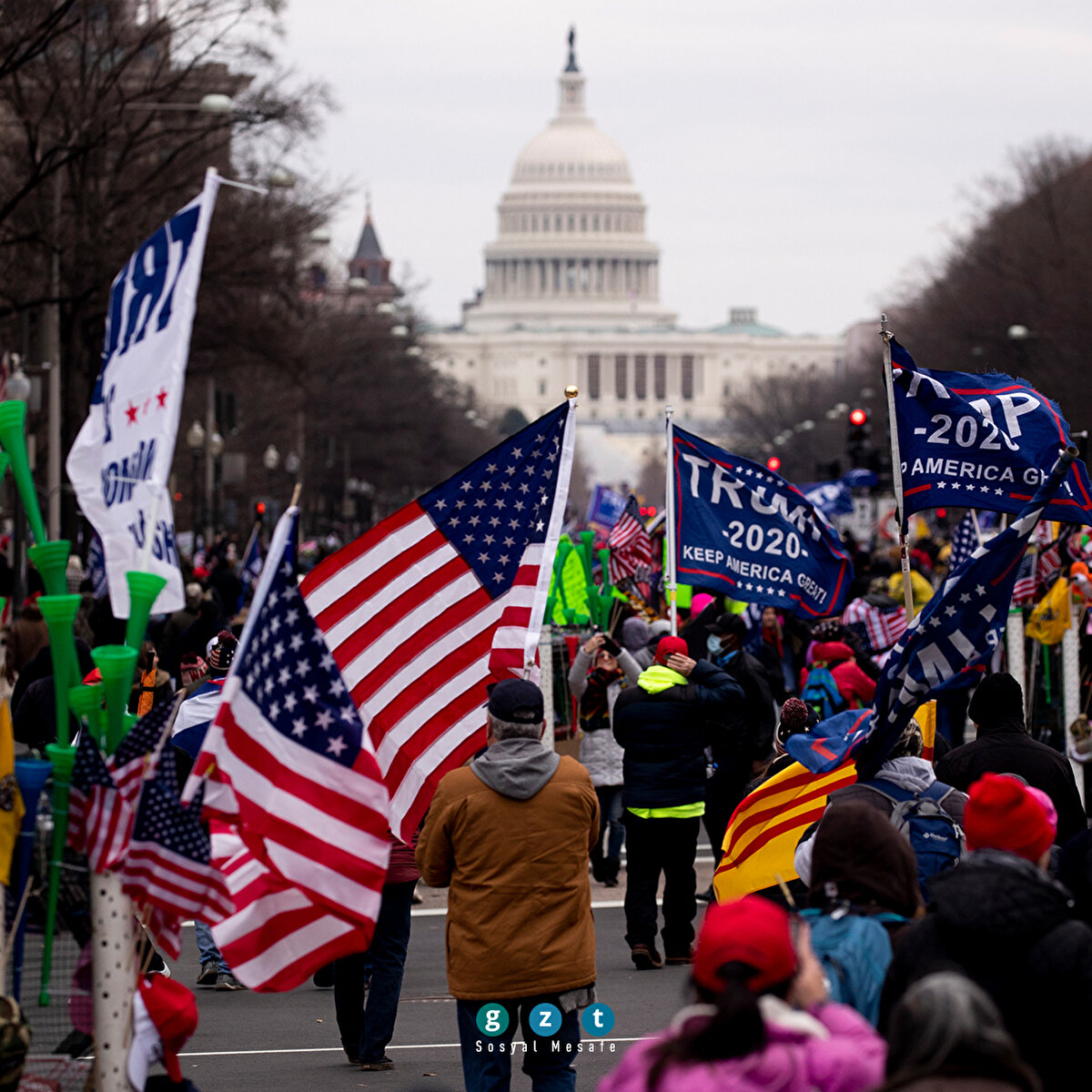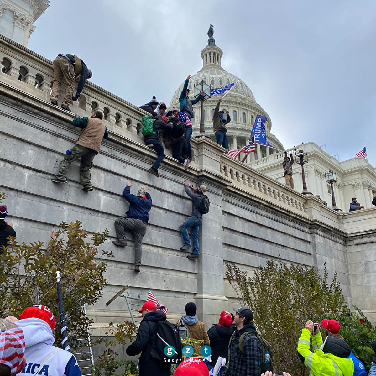 ABD'nin başkenti Washington'da Donald Trump'a destek gösterisi düzenleyen bir grup protestocu, polis barikatını aşarak Kongre binasına girdi