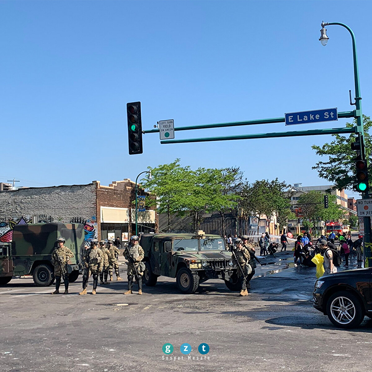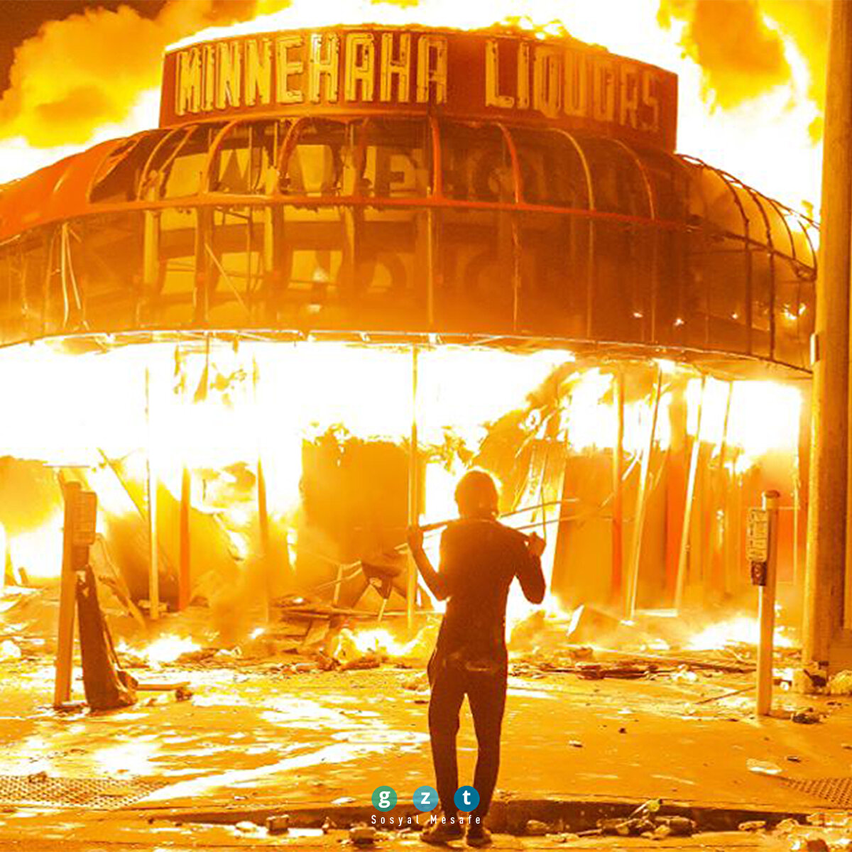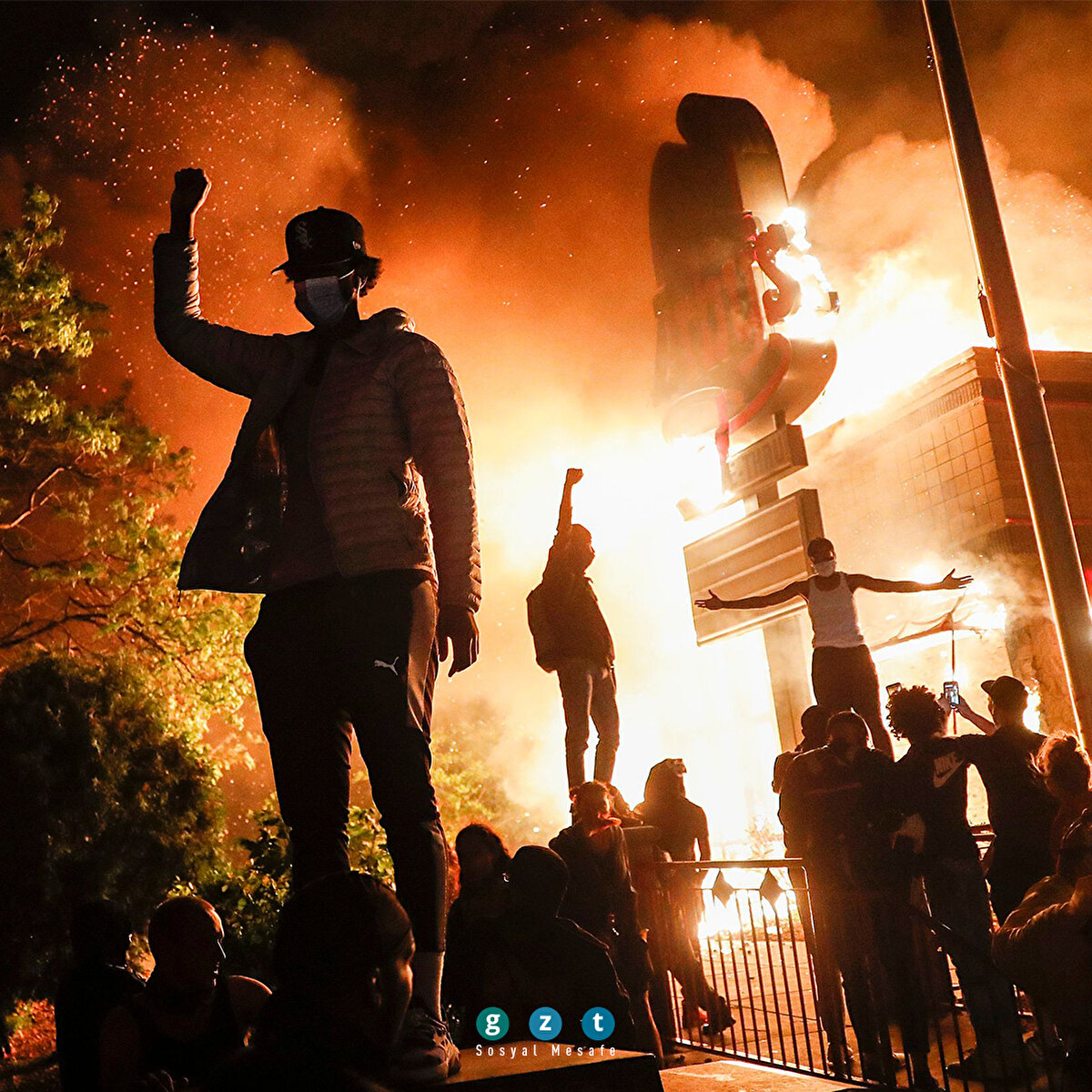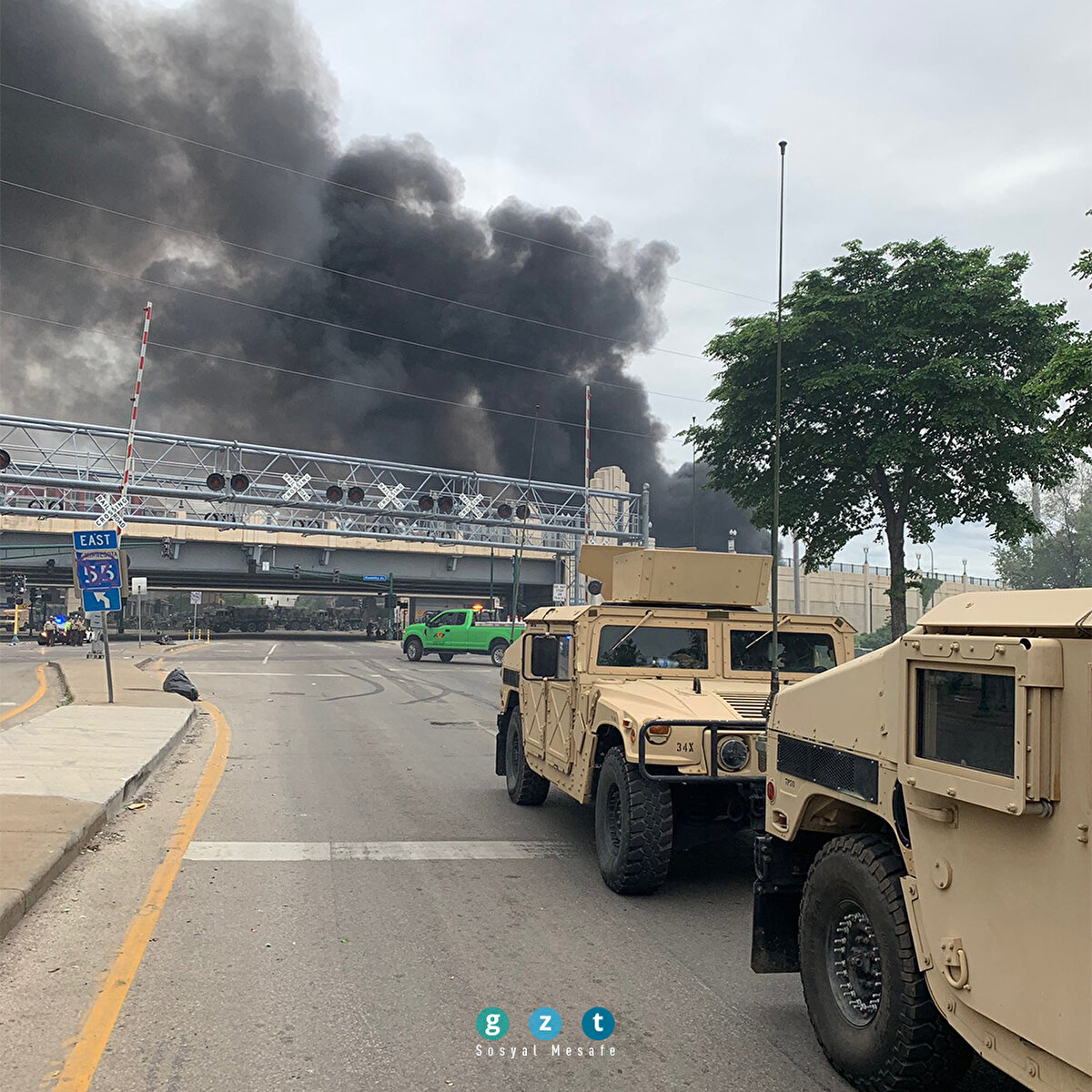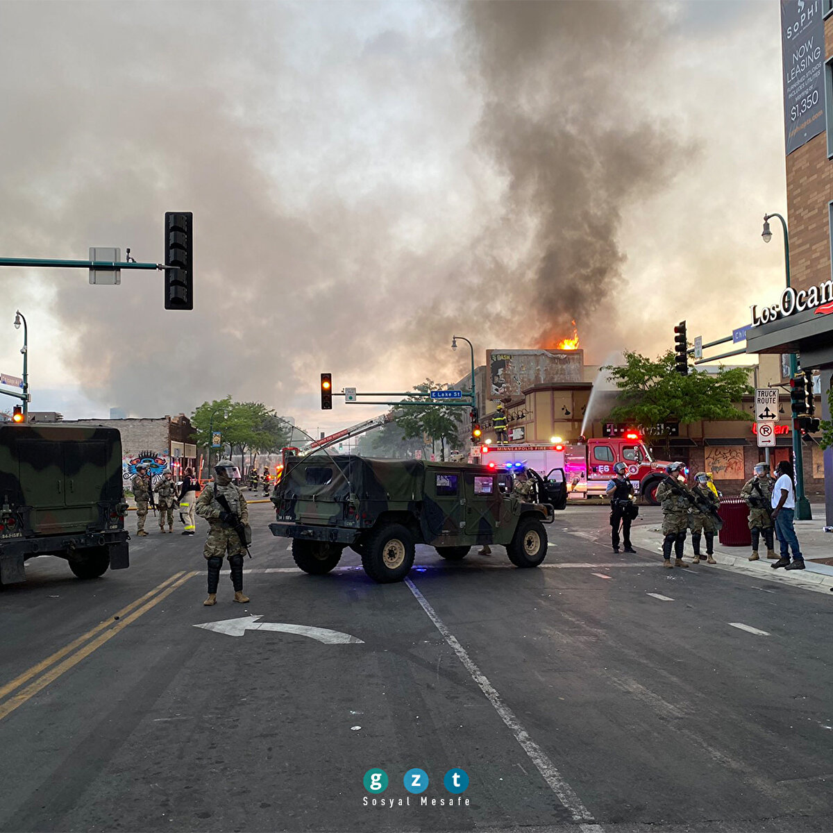 ABD'de George Floyd'un polis şiddetiyle öldürülmesi ülkenin her yanında protesto ediliyor. Minneapolis'ten alınan görüntülerde yanmış ve yanmakta olan binalar, polis araçları ve şehirde ilan edilen sokağa çıkma yasağı sonrası bölgeye sevk edilen zırhlı araçlar göze çarpıyor.